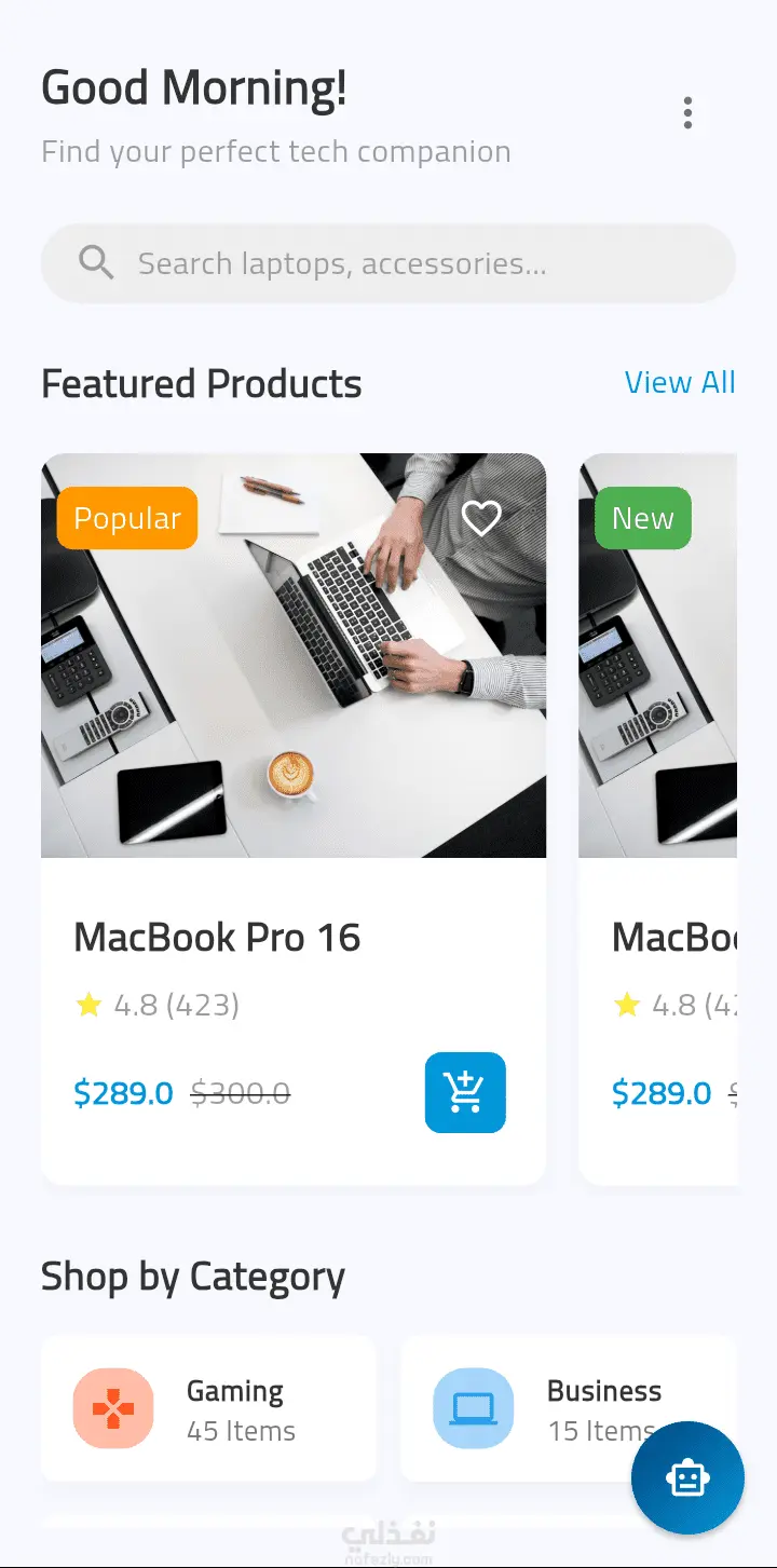 قمت بتطوير تطبيق تجارة إلكترونية متكامل من الصفر متخصص في بيع الأجهزة الإلكترونية. يغطي التطبيق رحلة المستخدم الكاملة بدءًا من تصفح المنتجات وحتى إتمام عملية الشراء، مع التركيز على تقديم تجربة مستخدم سلسة وأداء عالٍ. أبرز الجوانب التقنية التي تم تنفيذها في المشروع: واجهة رئيسية ديناميكية: تم بناء شاشة رئيسية جذابة تعرض المنتجات المميزة، وأقسامًا مختلفة للتسوق حسب الفئة، بالإضافة إلى شريط بحث فعال لتسهيل العثور على المنتجات. صفحة تفاصيل المنتج: تم تصميم صفحة غنية بالمعلومات لعرض تفاصيل كل منتج، وتشمل معرض صور، السعر، التقييمات، والمواصفات، بالإضافة إلى عرض مميزات المنتج مثل (الشحن المجاني، الضمان). نظام تصفح وعرض متقدم: تم استخدام أدوات فلاتر المتقدمة مثل ListView و GridView لعرض المنتجات والفئات بطريقة منظمة وجذابة. نظام مصادقة كامل: يشمل التطبيق نظامًا كاملاً لتسجيل الدخول، إنشاء حساب جديد، واستعادة كلمة المرور، مع خيار تسجيل الدخول باستخدام جوجل.