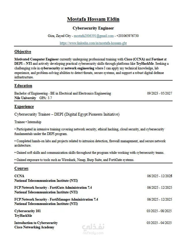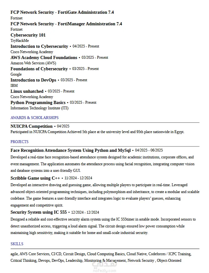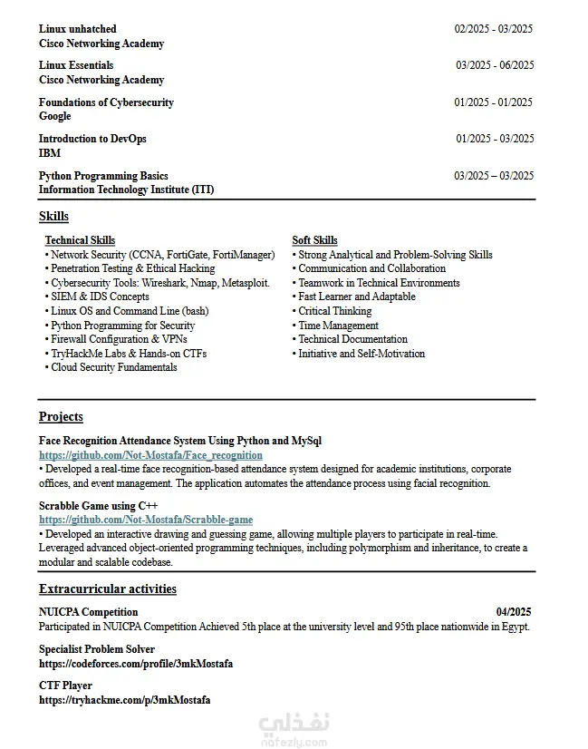 استخدمت الكلمات المفتاحية المناسبة لمجال الوظيفة لضمان مرور السيرة الذاتية من أنظمة الـATS بدون مشاكل.