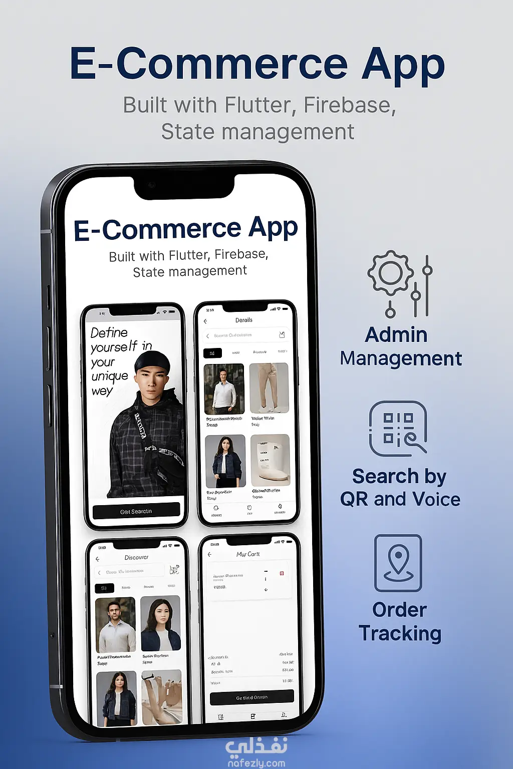 تطبيق تجارة إلكترونية يحتوي على نظام تسجيل دخول للمستخدمين والمديرين. تم تطويره باستخدام Flutter وFirebase مع إدارة الحالة. الميزات: إدارة كاملة للمدير (Admin Management) البحث باستخدام رمز QR والصوت تتبع الطلبات (Order Tracking)