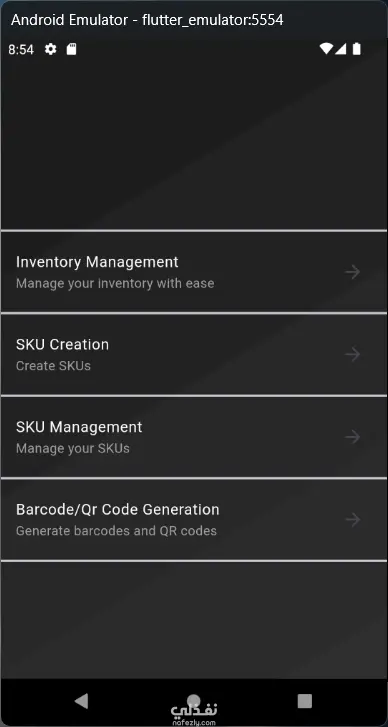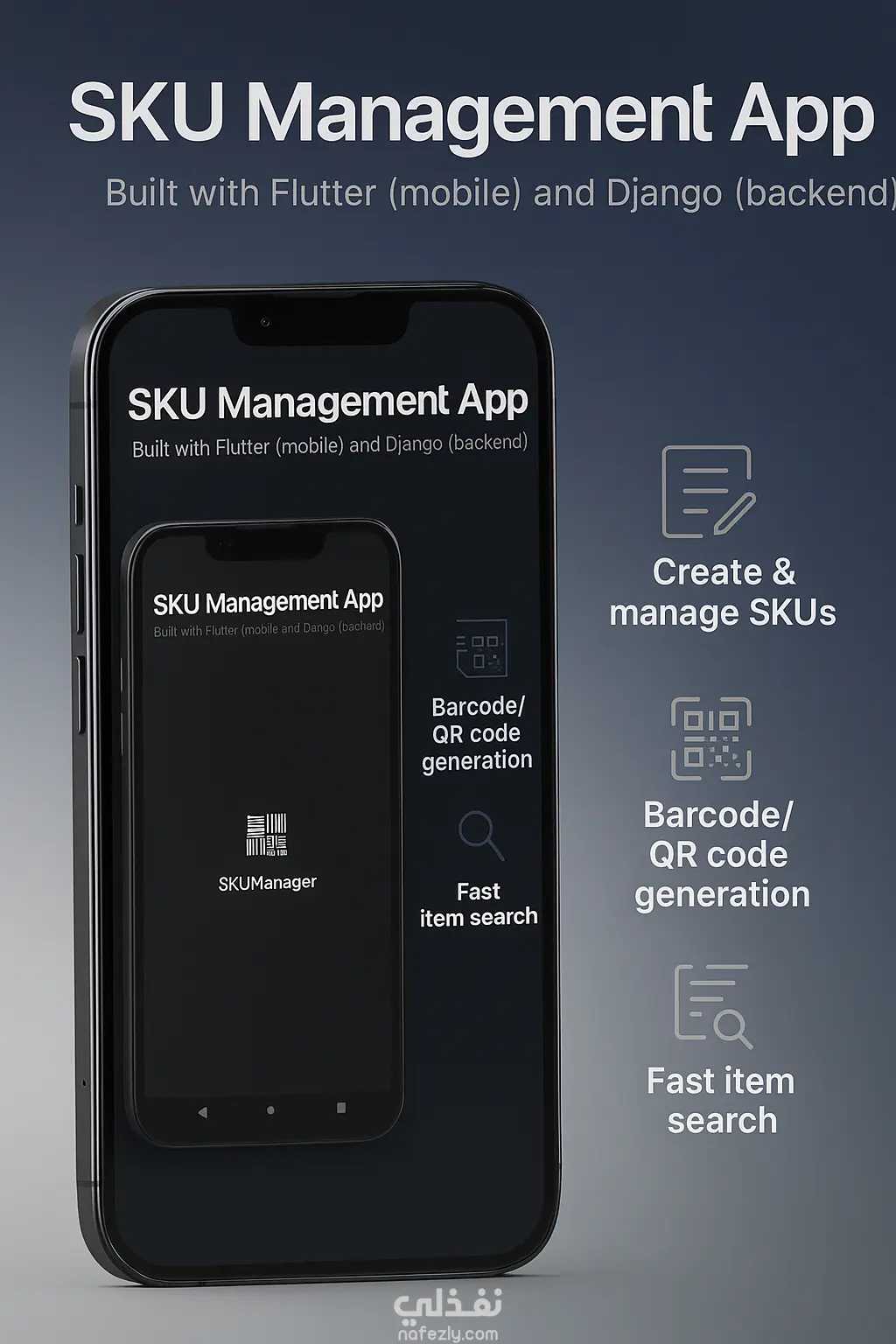 تطبيق إدارة الأكواد (SKU Management App) هو حل شامل لإدارة المخزون، مبني بواجهة Flutter وخادم خلفي باستخدام Django. يسهّل التطبيق عمليات المخزون بواجهة عصرية وسهلة الاستخدام، مع تصميم داكن وجذاب.