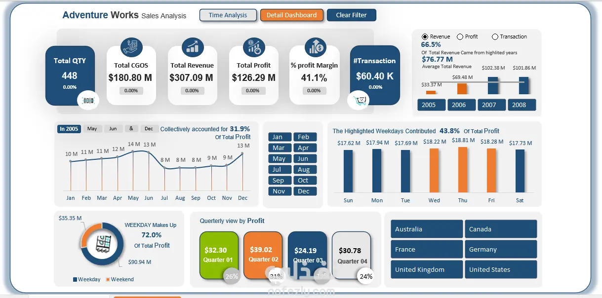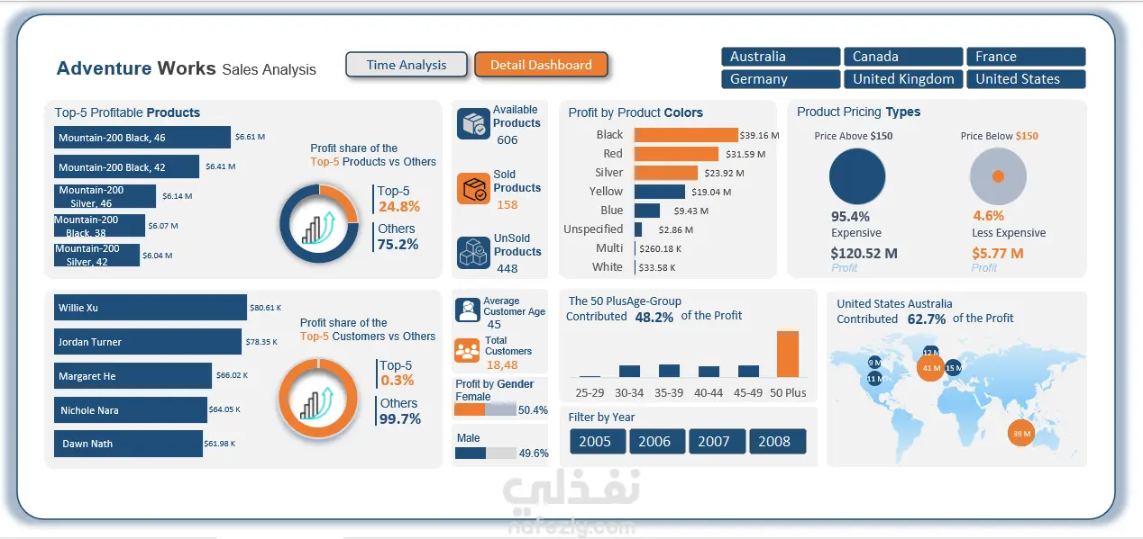 Adventure Sales – تحليل مبيعات متعدد الأبعاد