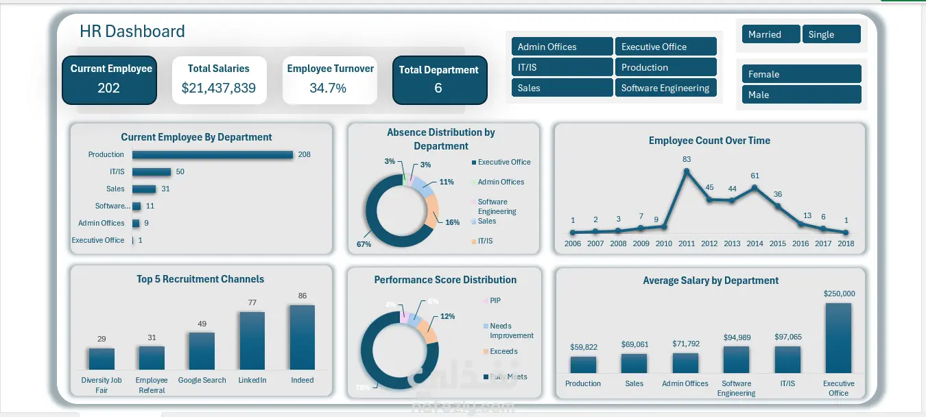 HR Dashboard – تقارير الموظفين والأداء