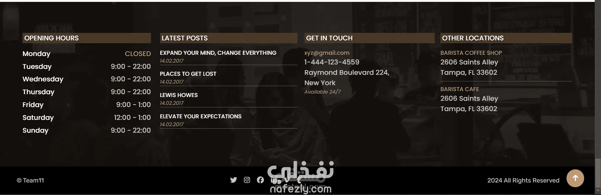 طوّرت موقع ويب حديثًا ومتكاملًا لمقهى، يهدف إلى تقديم تجربة رقمية مميزة تعكس هوية المقهى وأجواءه الخاصة.
