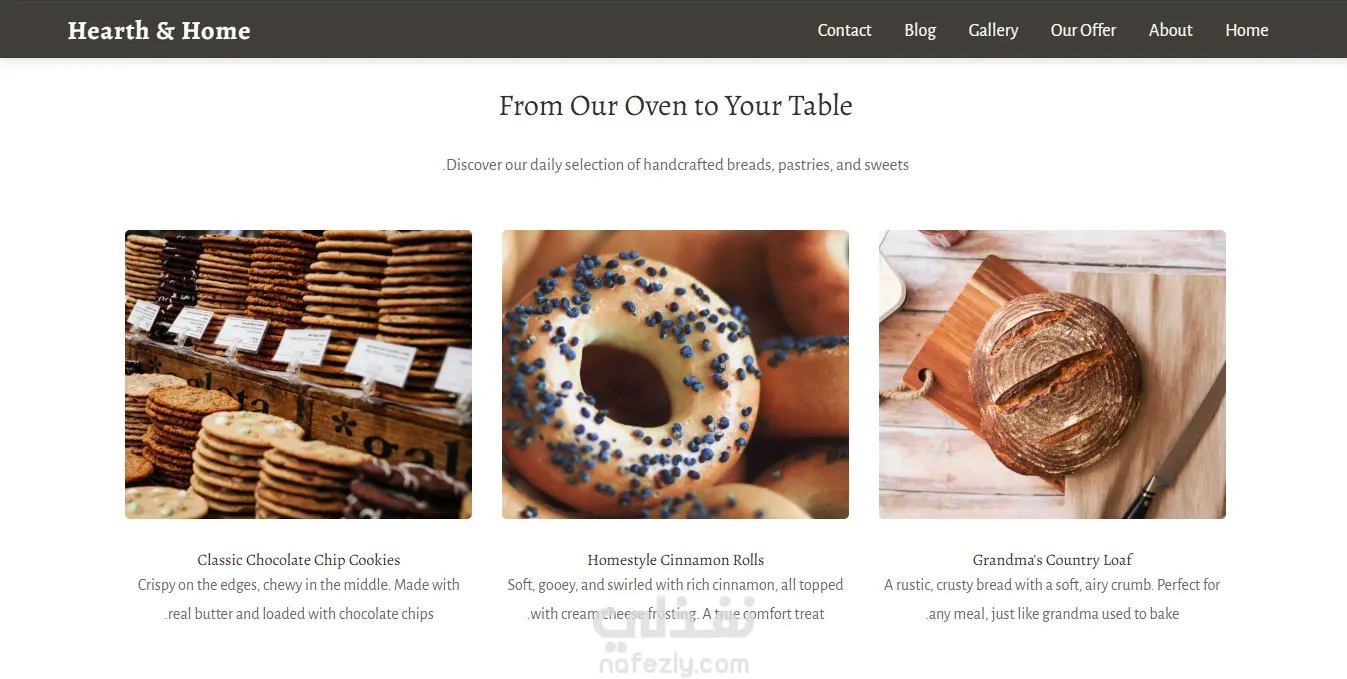 تصميم واجهة أمامية دافئة وجذابة لمخبز "Hearth & Home Bakery"