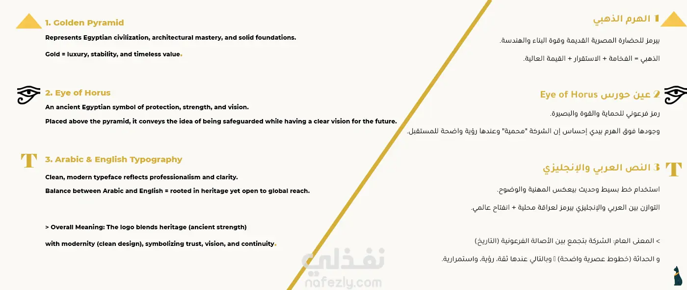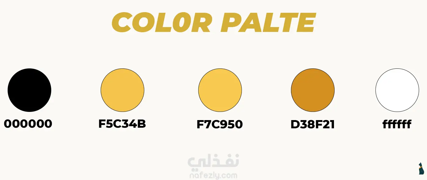 الألوان تم اختيارها بعناية لتجسّد القوة، المصداقية، والتميز — الذهبي يرمز للجودة والريادة، والأسود يعبّر عن الثبات والهيبة، بينما الأبيض يمنح توازنًا بصريًا يوحي بالثقة والنقاء.