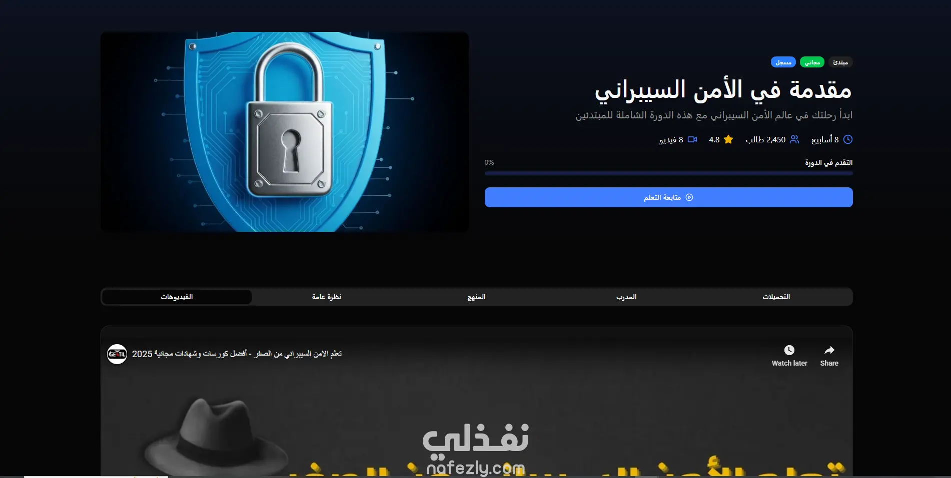 منصه لتعليم الامن السيبراني باللغه العربيه وبشهادات