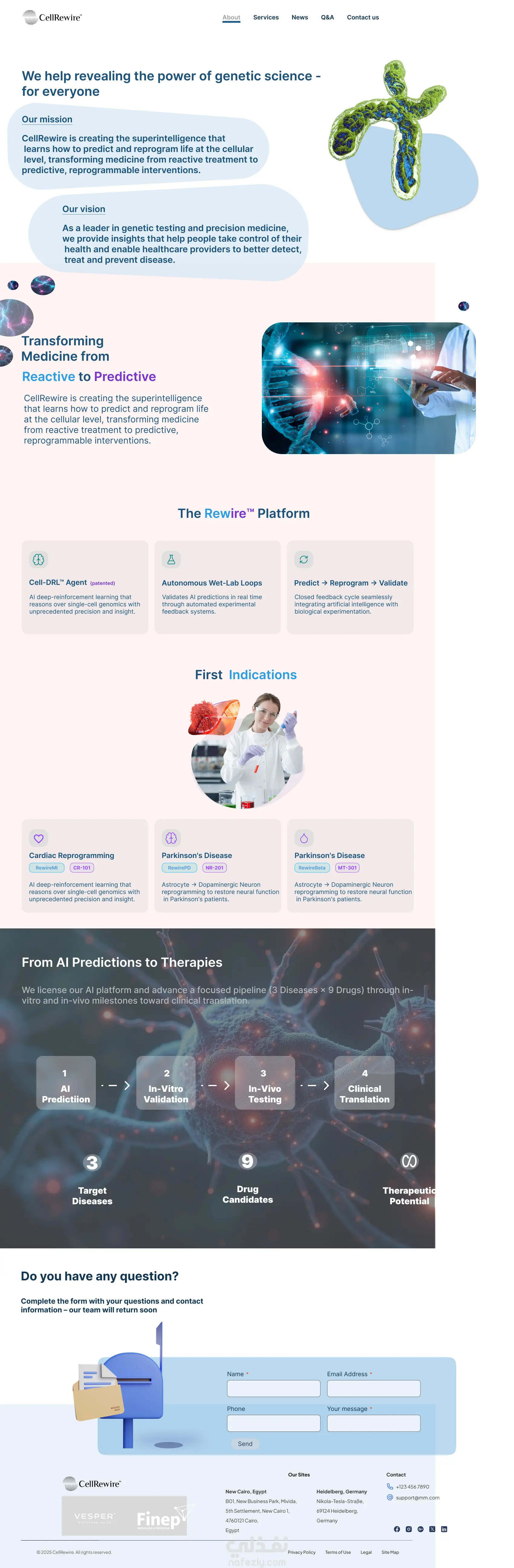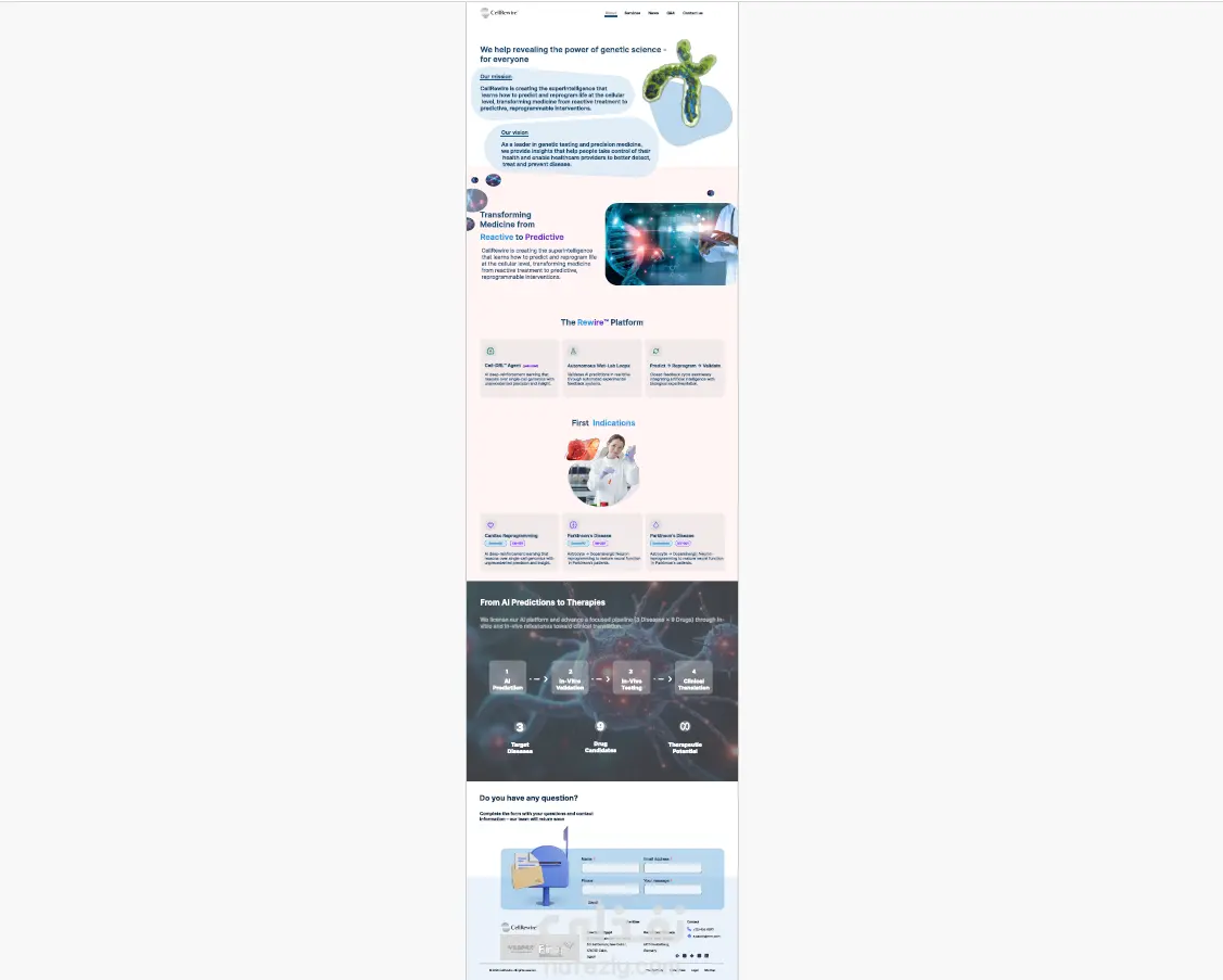 تصميم صفحه تعريفيه لشركه ناشئه بمجال الوراثه