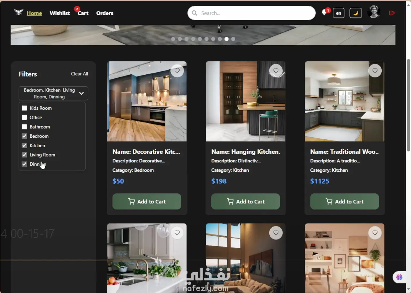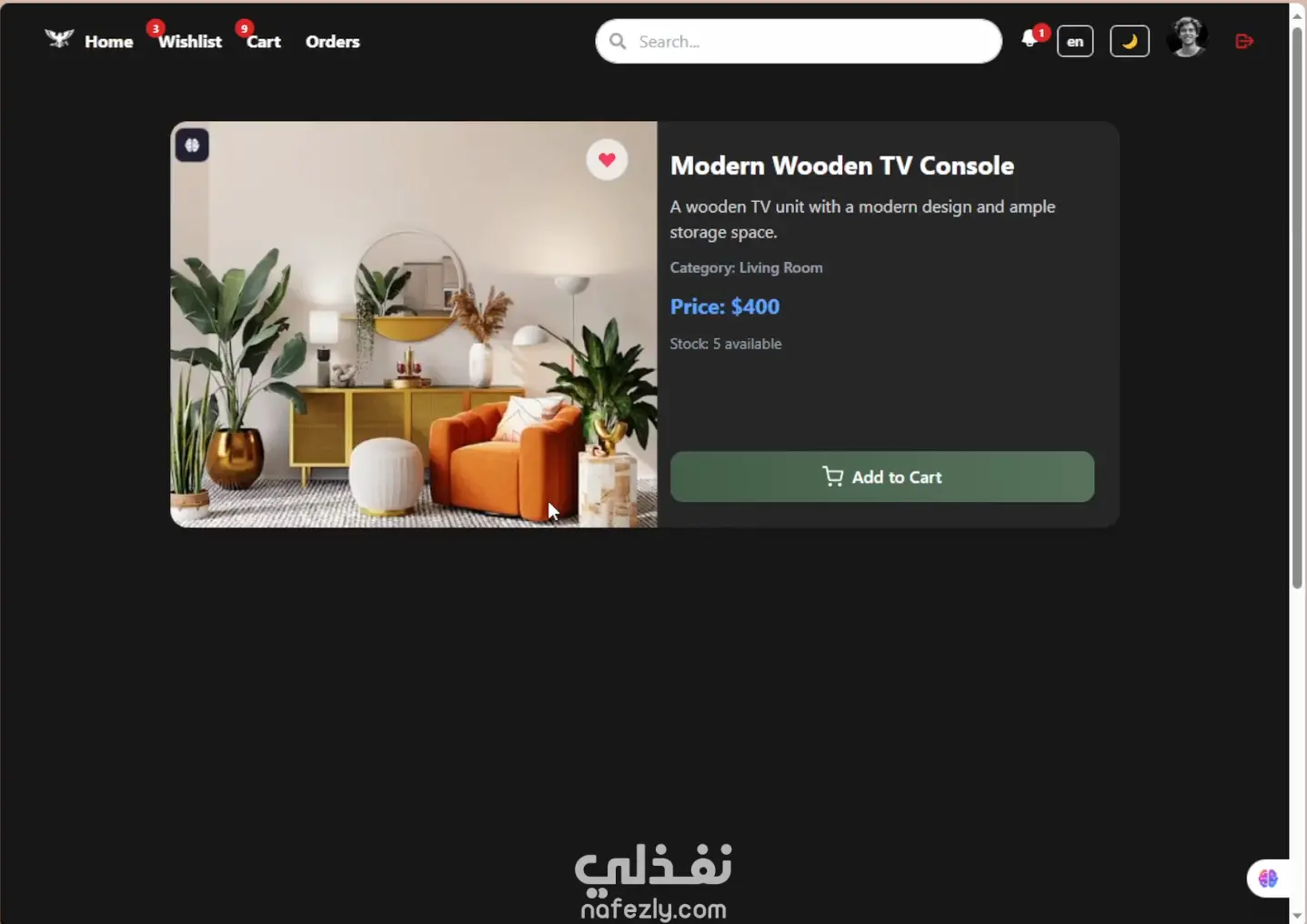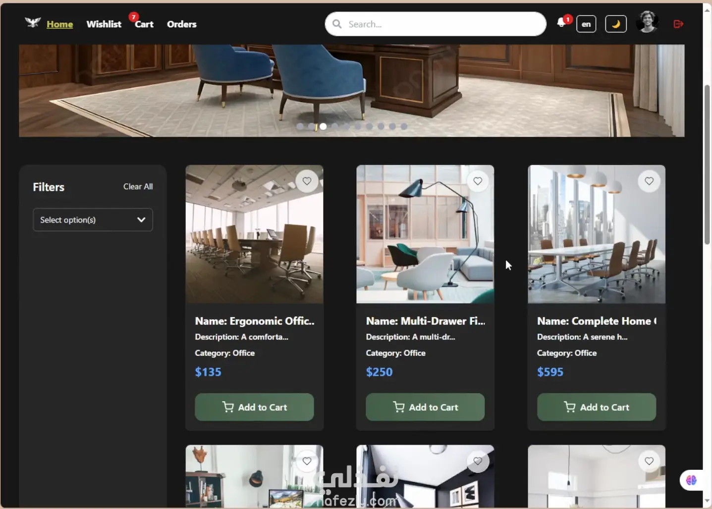 موقع خاص لشركه اثاث لتمكين اللمشتري معاينه المنتج والتعرف ع المنتجات الموجوده واضافه المفضله وتوفير صفحه للتحكم ف المنتجات ومتابعه الاوردرات