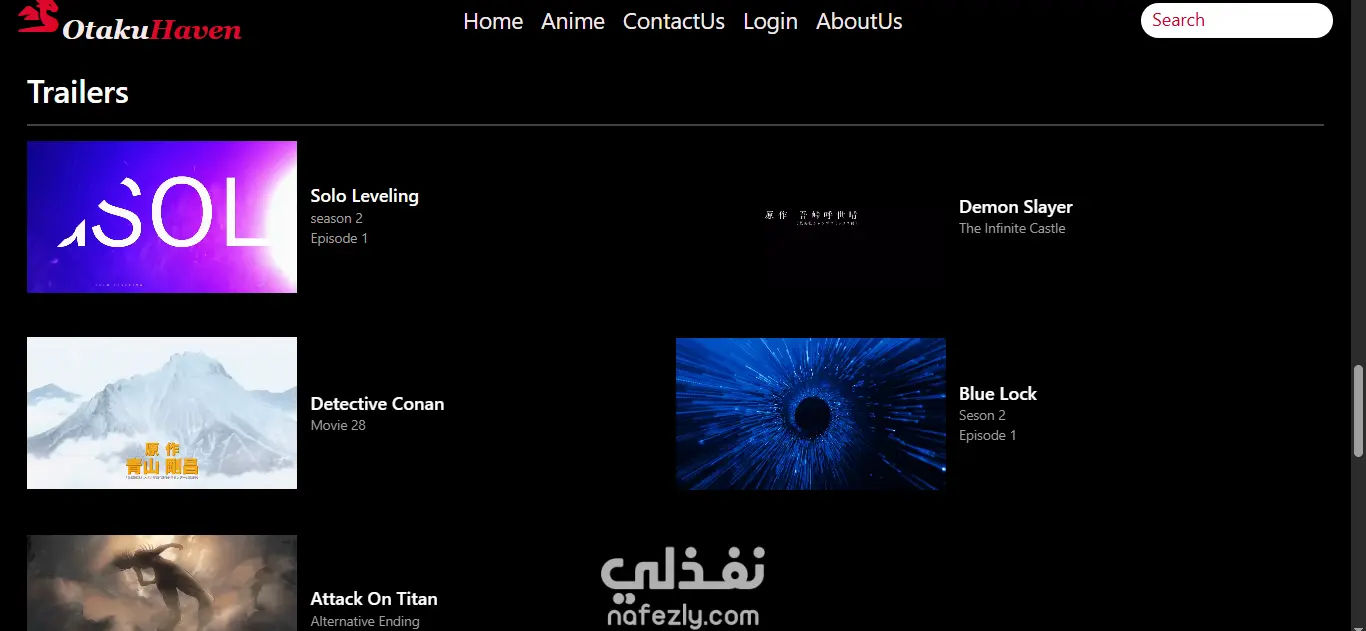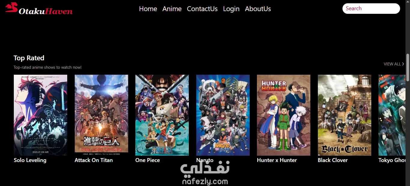مشروع OtakuHaven هو نسخة أولية (Prototype) لموقع ويب مخصص لعشّاق الأنمي. صممت الواجهة باستخدام HTML, CSS, JavaScript مع صفحات أساسية مثل (الصفحة الرئيسية، تسجيل الدخول، التسجيل، التواصل)، بالإضافة إلى تصنيفات محتوى مثل الكوميدي، الرومانسي، الرياضي والفيديو. التقنيات المستخدمة: HTML لبناء هيكل الموقع. CSS (all.css – style.css) لتصميم واجهة أنيقة وسهلة التصفح. JavaScript (script.js) لإضافة بعض التفاعلات. المميزات الحالية: تصميم بسيط وسهل الاستخدام. صفحات أساسية منظمة (Home, Contact, Login, Sign-up). تقسيم المحتوى إلى تصنيفات رئيسية. خطط التطوير المستقبلية: إضافة صفحات تفصيلية لكل أنمي على حدة. ربط الموقع بـ API أو قاعدة بيانات لعرض المحتوى ديناميكيًا.