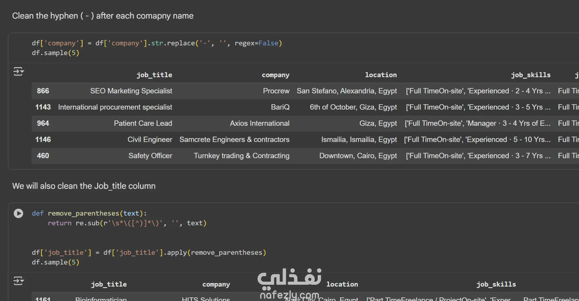 تحليل البيانات لاستخراج أنماط الوظائف، التوزيع حسب المدينة والمجال، ومتطلبات الشركات.