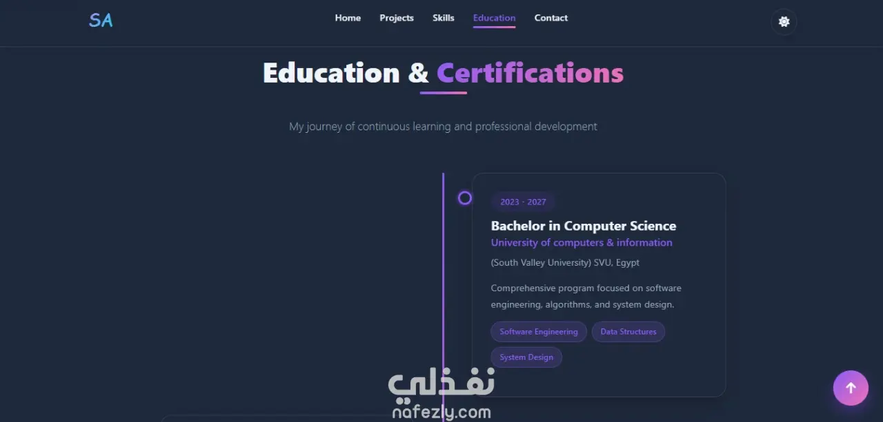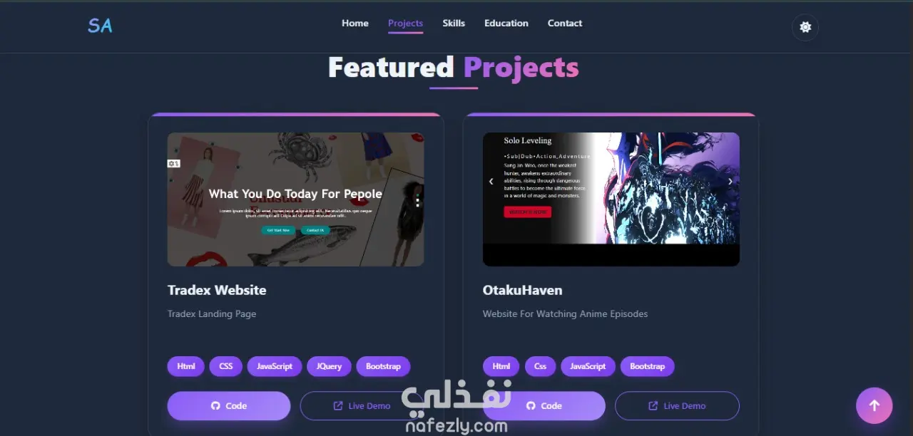 تصميم وتطوير موقع بورتفوليو شخصي لعرض المشاريع والمهارات بشكل أنيق وجذاب. الموقع متجاوب بالكامل مع جميع الأجهزة ويعكس خبرة في HTML، CSS، JavaScript وAngular. يشمل اقسام متعددة مثل Home، About Me، Projects، وContact و Education لتقديم تجربة مستخدم سلسة وواجهة احترافيةز