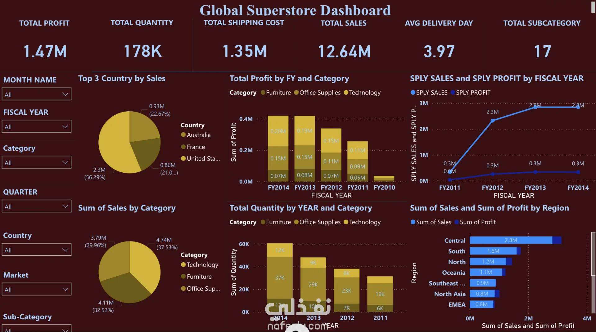 هذا المشروع قمت بإنشاء Dashboard تحليلية تفاعلية باستخدام أداة Power BI لعرض أداء المبيعات لمتجر عالمي.