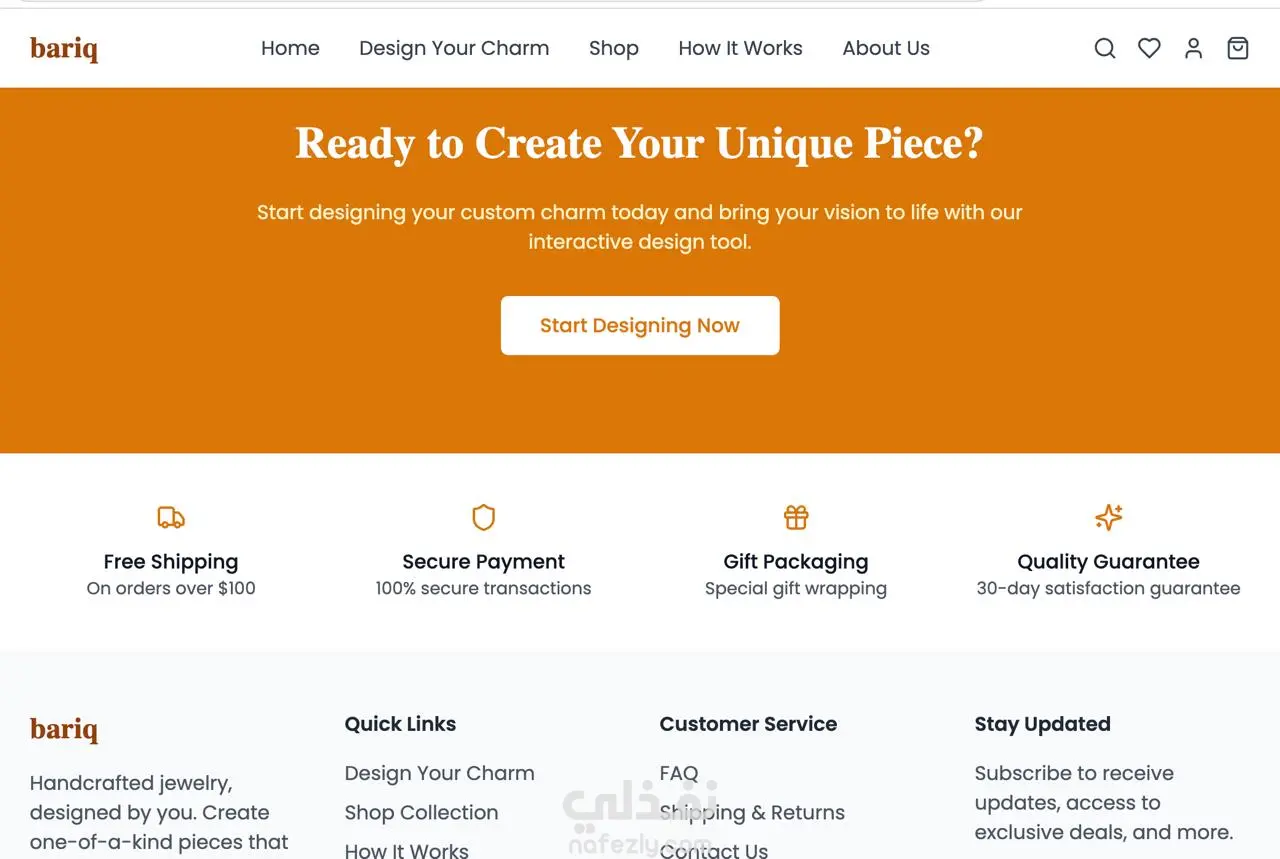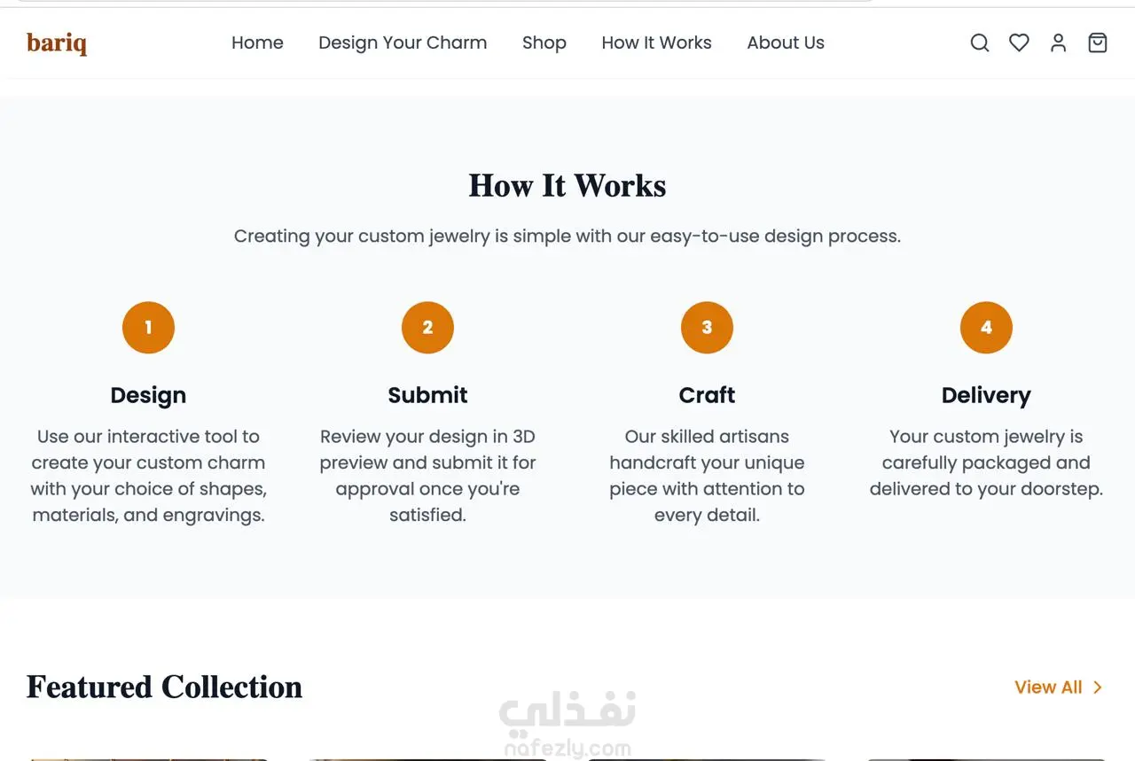 تم إنشاء موقع ويب ستاتيك متكامل بتصميم أنيق وواجهة سهلة الاستخدام، يضم الصفحات الأساسية: Home – About – Products – Favorites – Cart – Contact.