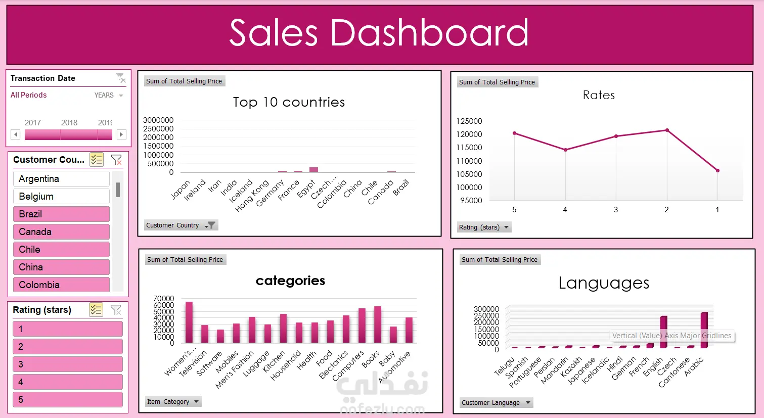 قمتُ بتصميم Dashboard احترافي على برنامج Excel بهدف تحليل وعرض البيانات بطريقة واضحة وسهلة الفهم. تضمّن العمل تنظيم البيانات الخام، إنشاء جداول محورية (Pivot Tables)، واستخدام مخططات تفاعلية (Charts & Slicers) لتمكين المستخدم من استكشاف النتائج بسهولة. اللوحة تعرض مؤشرات الأداء الرئيسية (KPIs) وتقدّم ملخصًا بصريًا لمؤشرات المبيعات والأرباح بطريقة تساعد في اتخاذ قرارات أسرع وأكثر دقة.