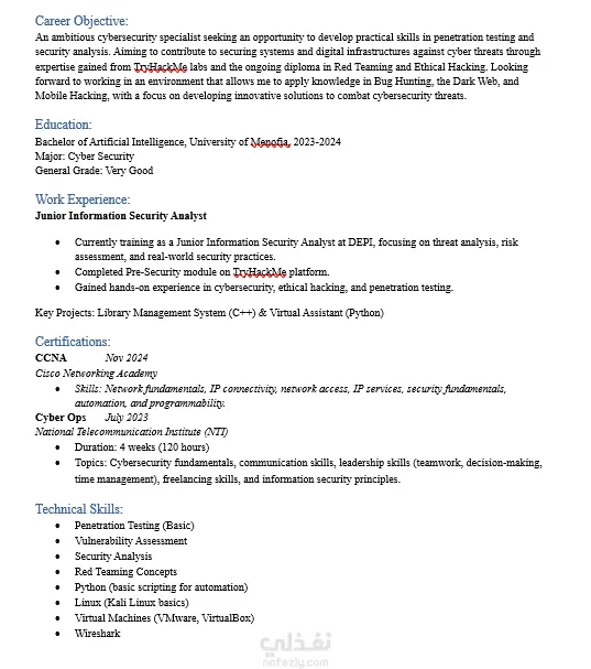 تصميم سيرة ذاتية احترافية تساعد في إبراز المهارات والخبرات بطريقة مرتبة وأنيقة. تم تصميم الـCV بأسلوب حديث يجمع بين الأناقة والبساطة، مع استخدام ألوان متناسقة وخطوط واضحة تسهّل القراءة وتجذب الانتباه. يحتوي التصميم على أقسام رئيسية مثل: المعلومات الشخصية، الخبرات، التعليم، المهارات، والمشاريع السابقة، مع ترتيب بصري يجعل القارئ يتنقل بسهولة بين الأقسام. الهدف من التصميم هو منح المستخدم ملفًا جاهزًا للتقديم على الوظائف أو المنصات الاحترافية بشكل يظهر الجدية والتميز.