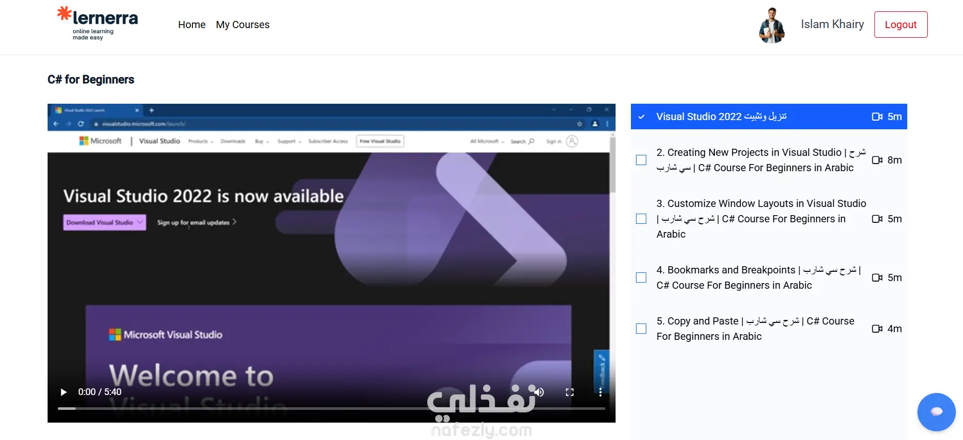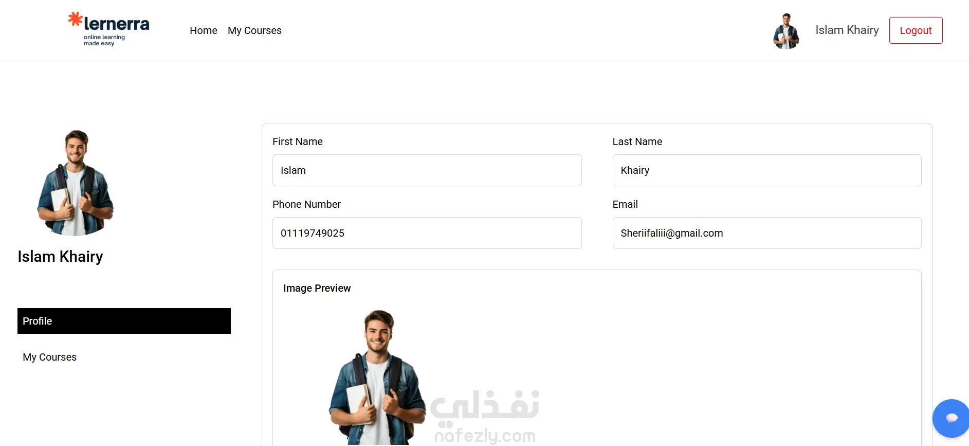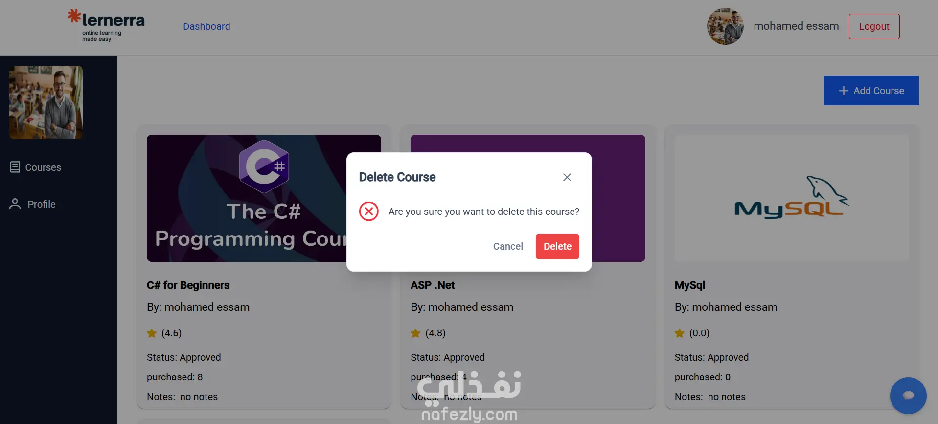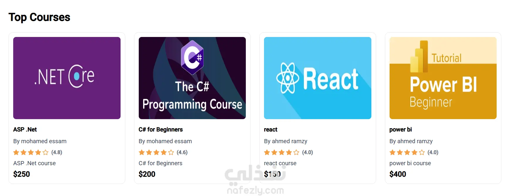 • إدارة كاملة للدورات والدروس (إضافة، تعديل، حذف)