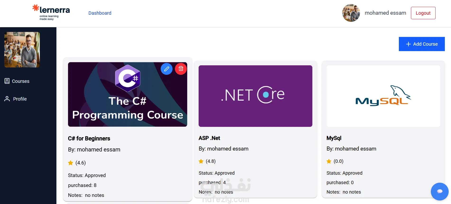 • لوحة تحكم متكاملة لإدارة الملف الشخصي والدورات