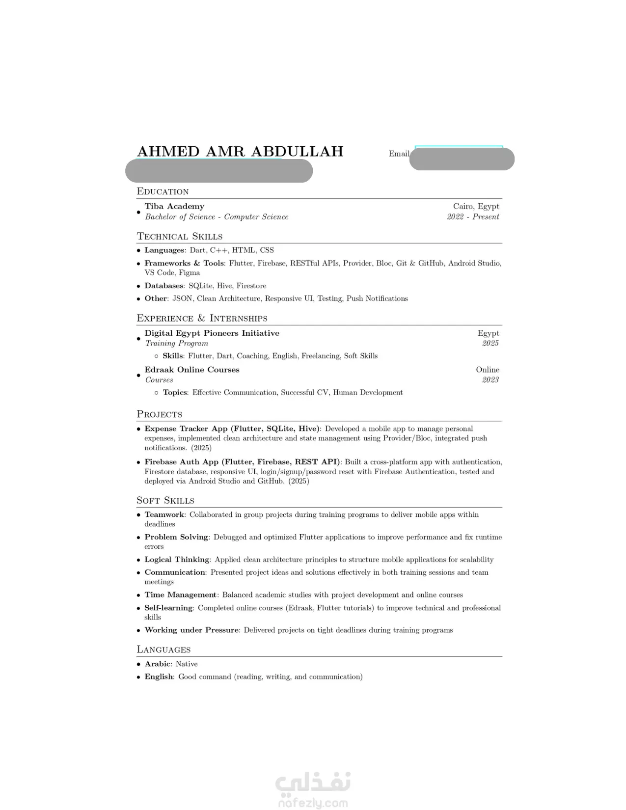 سيره زاتيه احترافيه متوافقه بنسبه تتخطي ال90% مع نظام ال ِATS لتجاوز فلاتر التوظيف مع اختبار للمصدقيه تصميم بسيط ومنظم يعرض مهارتك التقنيه بوضوح استخدام الكليمات المفتاحيه المناسبه لتخصصك لزياده فرص القبول التسليم خلال ساعات فقط من استلام المعلومات بمقابل 5$ فقط