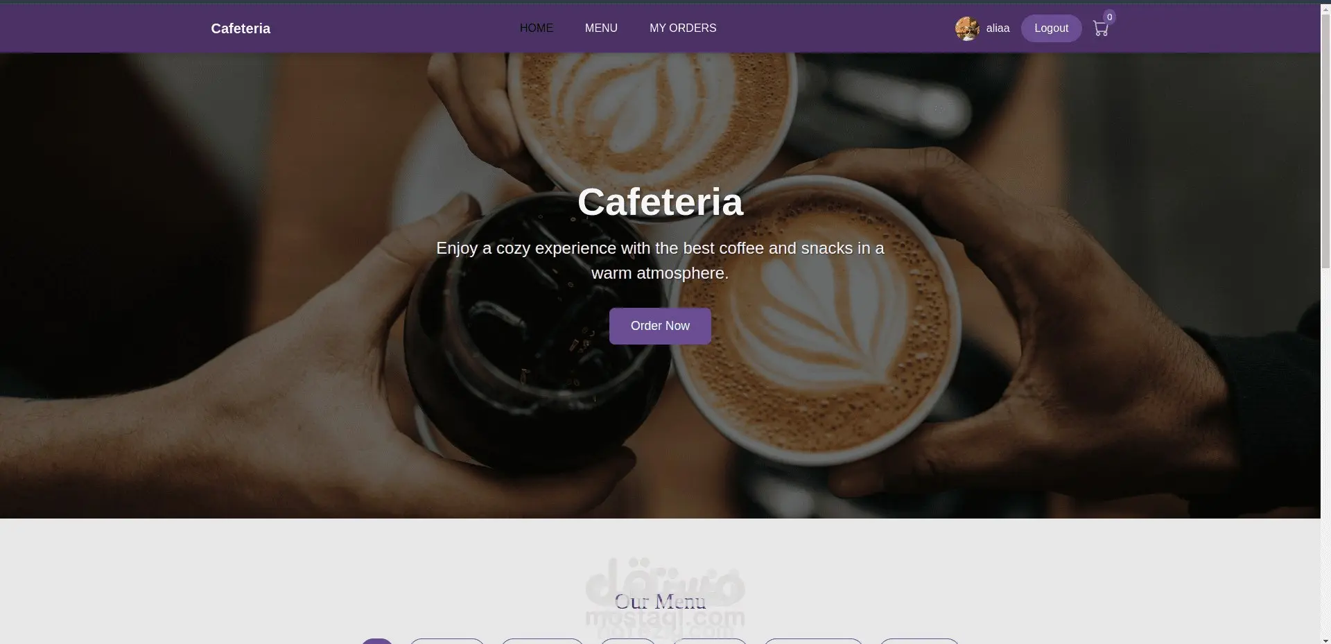 قمت بتطوير موقع كافيتريا ديناميكي باستخدام PHP لبرمجة الواجهة الخلفية، وMySQL لإدارة قواعد البيانات. يحتوي الموقع على مجموعة من الخصائص المهمة، منها: