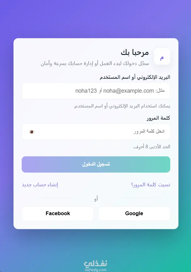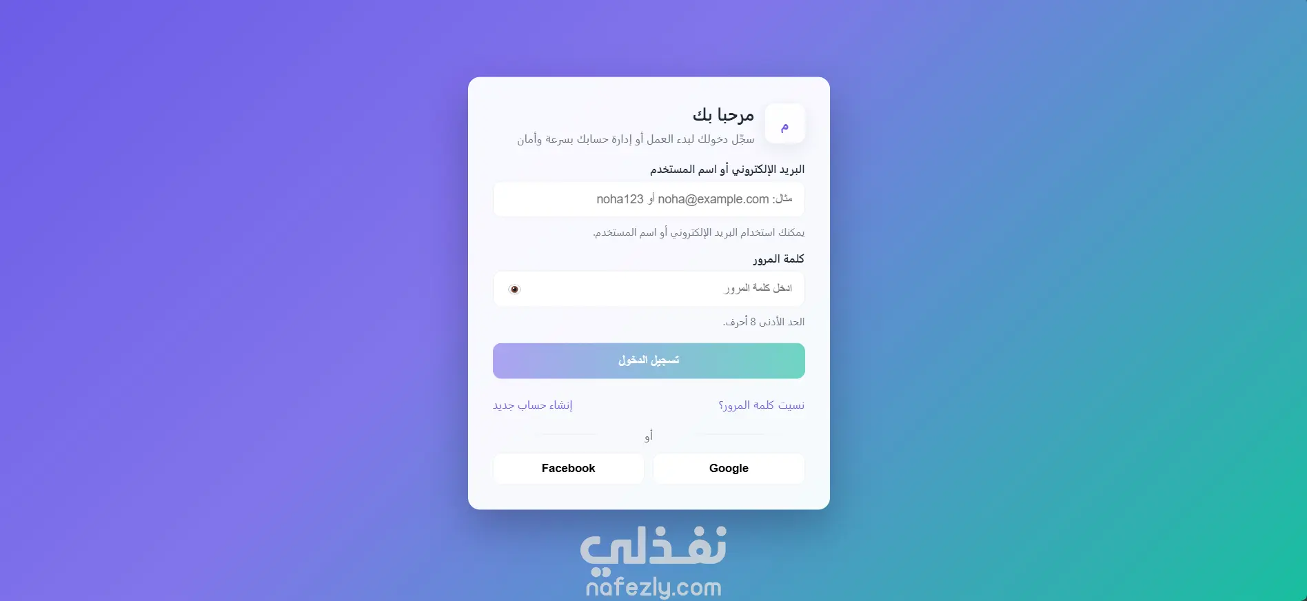 مشروع بسيط بلغة HTML + CSS + JavaScript لإنشاء نموذج تسجيل دخول تفاعلي مع التحقق الفوري من صحة الإدخالات (البريد الإلكتروني / اسم المستخدم وكلمة المرور). المميزات تحقق مباشر من الإدخال (Live Validation) أثناء الكتابة. دعم البريد الإلكتروني واسم المستخدم (بالإنجليزية أو العربية). زر إظهار/إخفاء كلمة المرور بطريقة تفاعلية مع رموز تعبيرية. رسائل خطأ فورية توضح سبب الخطأ للمستخدم. محاكاة عملية تسجيل الدخول باستخدام set Timeout لعرض تجربة واقعية. دعم إمكانية الوصول (ARIA) في زر إظهار كلمة المرور.