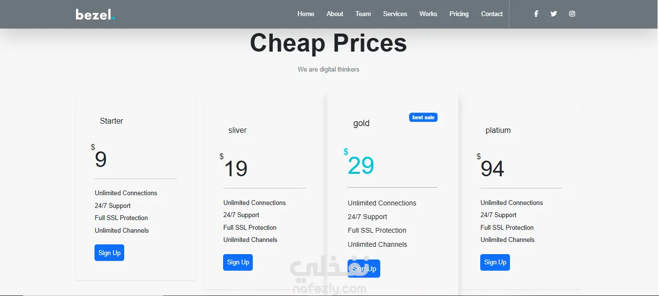 موقع Bazel هو موقع لشركة برمجة متخصصة في تطوير المواقع الإلكترونية والتطبيقات للشركات والأفراد حول العالم. يهدف الموقع إلى عرض خدمات الشركة، والتعريف بفريق العمل، وتقديم نبذة عن رؤيتها وأسعار الخدمات بشكل احترافي ومنظم. تم تصميم الموقع بواجهة حديثة وسهلة الاستخدام ليعكس روح الابتكار والاحترافية التي تميز الشركة أقسام الموقع باختصار: Home (الرئيسية): سلايدر يعرض فكرة الشركة وشعارها مع عبارات جذابة تدعو الزائر لاكتشاف الخدمات. About (من نحن): نبذة مختصرة عن الشركة ورؤيتها ورسالتها في تقديم حلول رقمية مبتكرة. Services (الخدمات): عرض سريع لأهم الخدمات مثل تطوير المواقع، التطبيقات، وتصميم واجهات المستخدم. Pricing (الأسعار): باقات بسيطة وواضحة تناسب احتياجات العملاء المختلفة. Team (الفريق): عرض مختصر لأفراد الفريق مع توضيح تخصصاتهم ودورهم في الشركة. Contact (تواصل معنا): نموذج تواصل وروابط سريعة لتسهيل الاتصال والاستفسار عن الخدمات وخريطه لعرض مكاننا.
