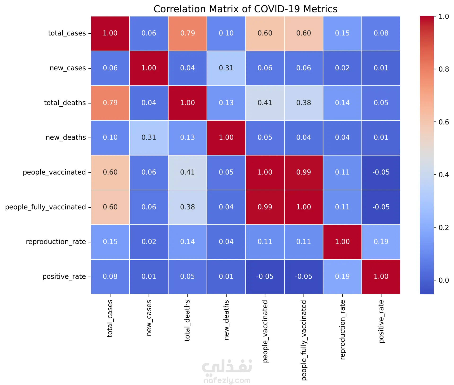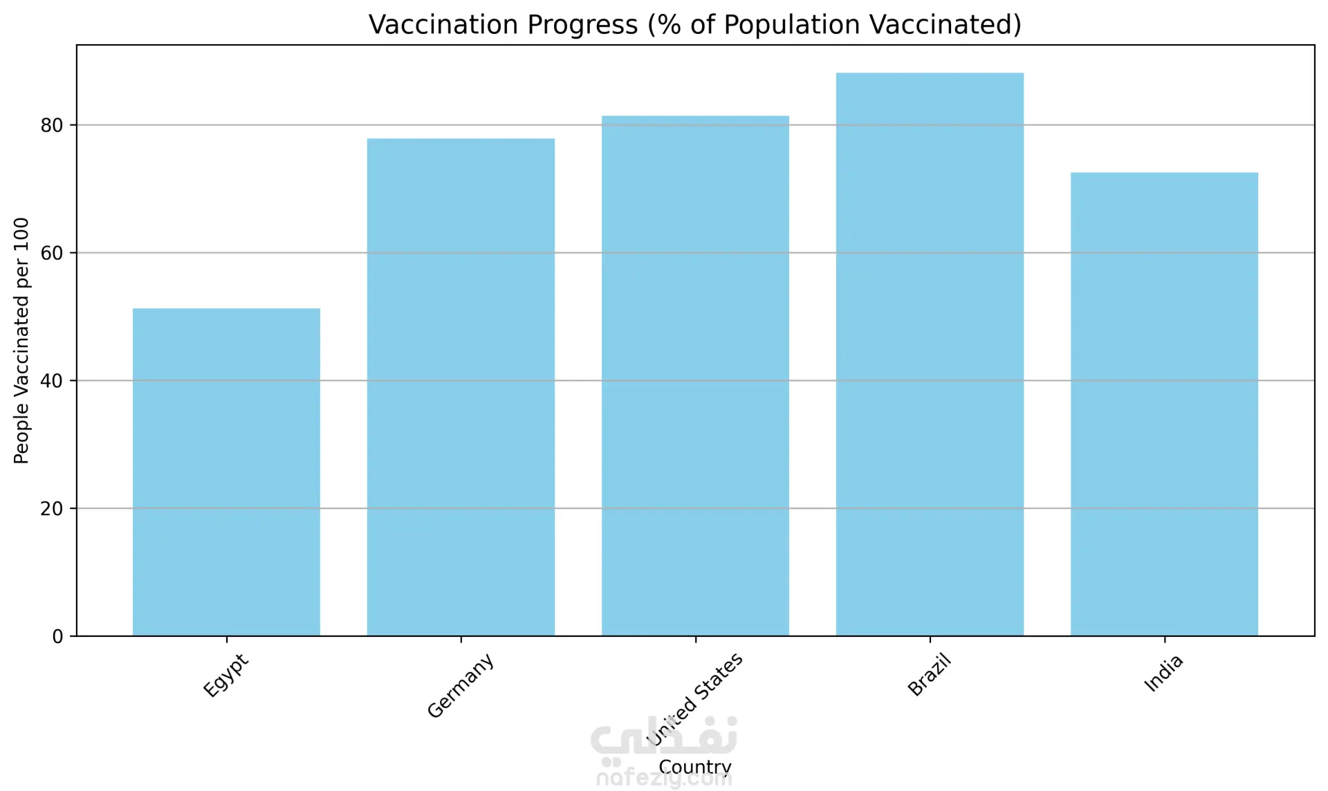 في هذا المشروع قمتُ بتحليل بيانات جائحة COVID-19 لتحديد الاتجاهات العالمية في الإصابات، التعافي، والوفيات باستخدام أدوات تحليل البيانات في Python. */ بدأتُ بتنظيف البيانات ومعالجتها باستخدام Pandas وNumPy، ثم أجريت تحليلًا استكشافيًا (EDA) لتحديد الأنماط والاختلافات بين الدول والفترات الزمنية. */ استخدمت مكتبات Matplotlib وSeaborn لتصميم رسوم بيانية تفاعلية توضح تطور الحالات، ومعدلات الانتشار، ونسب التعافي. نتيجة المشروع: -تقرير بصري واضح يوضح تطوّر الجائحة على مستوى العالم. -اكتشاف العلاقات بين المتغيرات (مثل الكثافة السكانية ومعدل الإصابات). -تطبيق عملي لمهارات Data Cleaning، Visualization، وStatistical Analysis. هذا العمل يُظهر قدرتي على تحويل البيانات الخام إلى رؤى واضحة يمكن الاستفادة منها في اتخاذ القرارات أو الدراسات الأكاديمية.