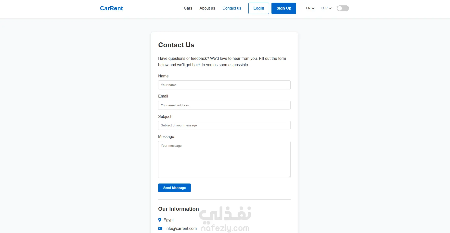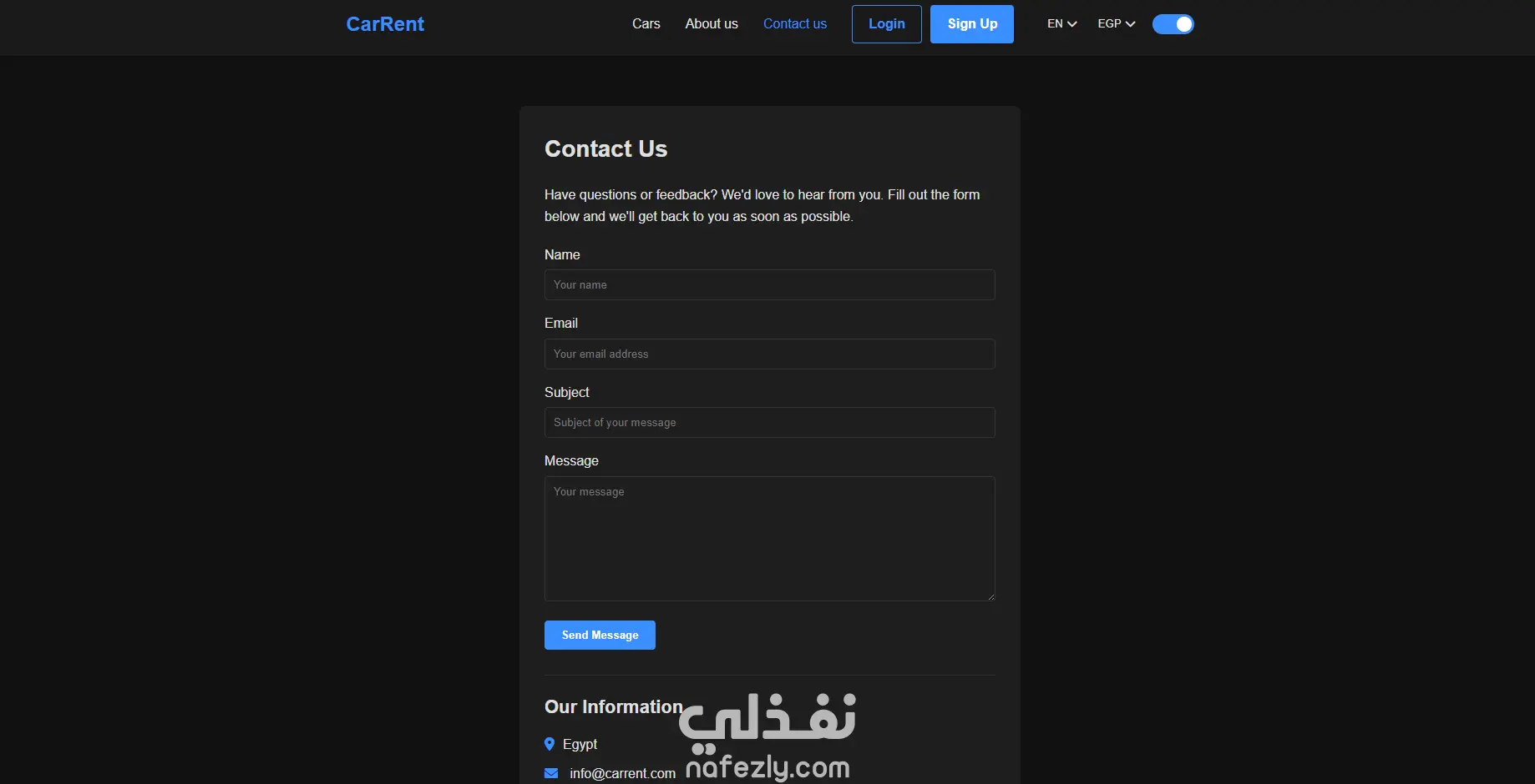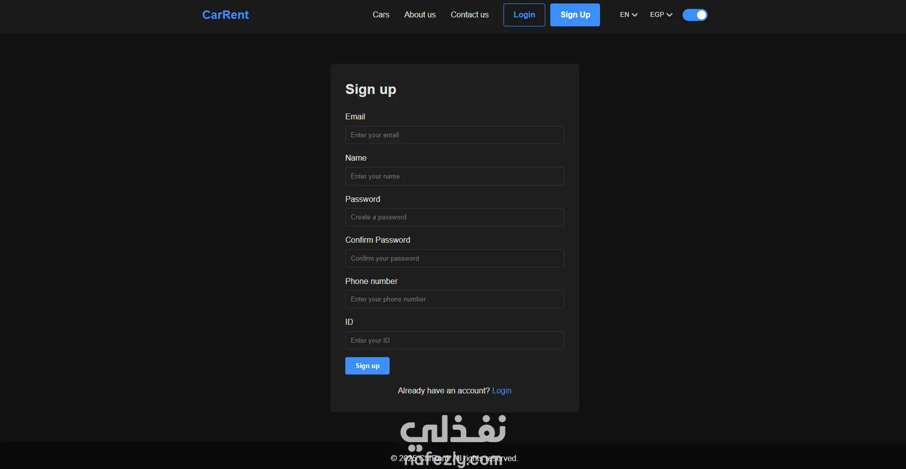 منصة ويب لتأجير السيارات تم تطويرها تتيح للمستخدمين حجز السيارات، التحقق من توفرها، وكتابة المراجعات. تم تنفيذ المشروع باستخدام Node.js و MongoDB و HTML و CSS و JavaScript، مع تطبيق مبادئ Agile و SDLC لضمان جودة التطوير وسهولة الاستخدام.