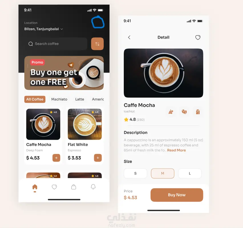 بما إنك تتحدث عن تطبيق Coffee Shop App (تطبيق مقهى للطلبات والعروض)، فإليك نموذج احترافي لقسم تفاصيل العمل يمكنك استخدامه في البورتفوليو أو عرض المشروع 👇