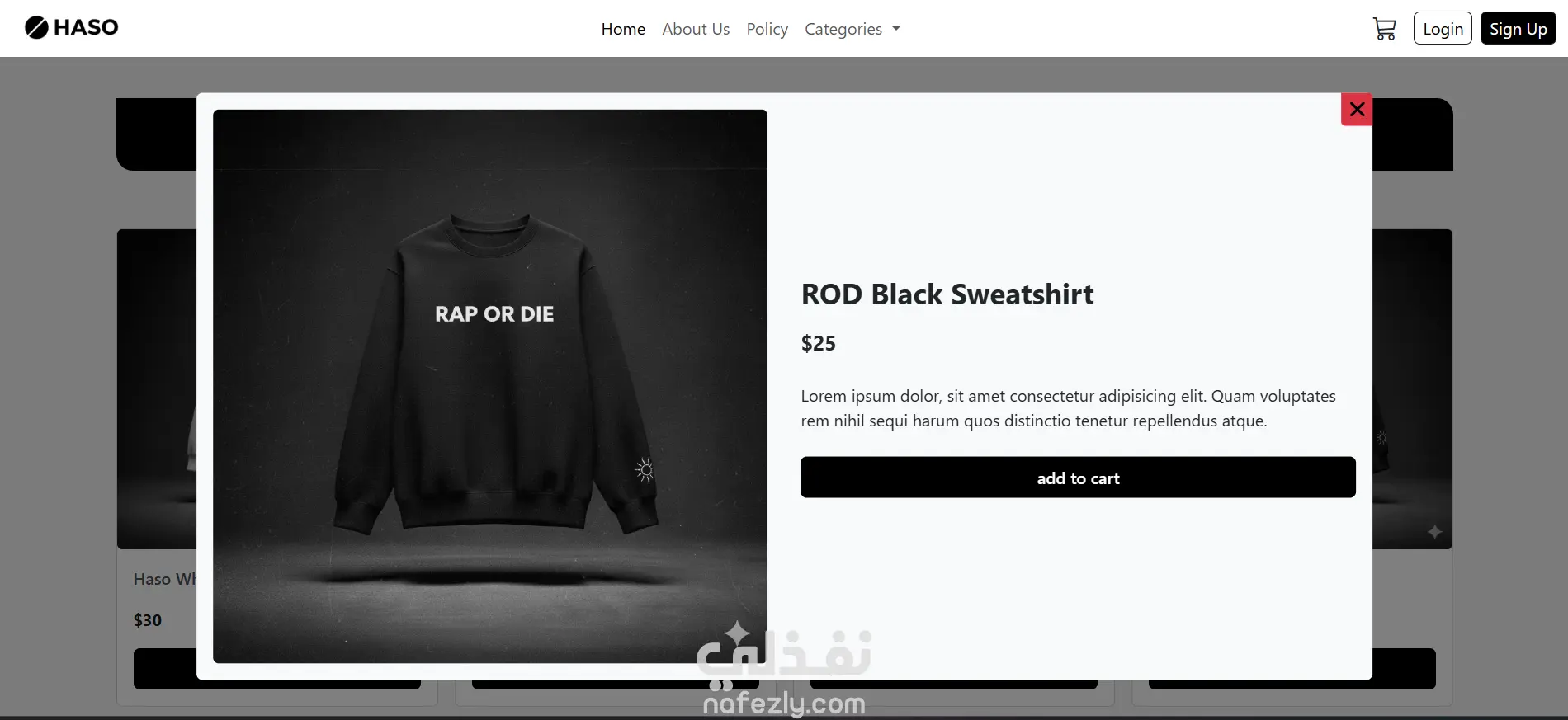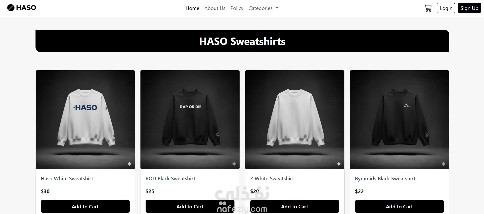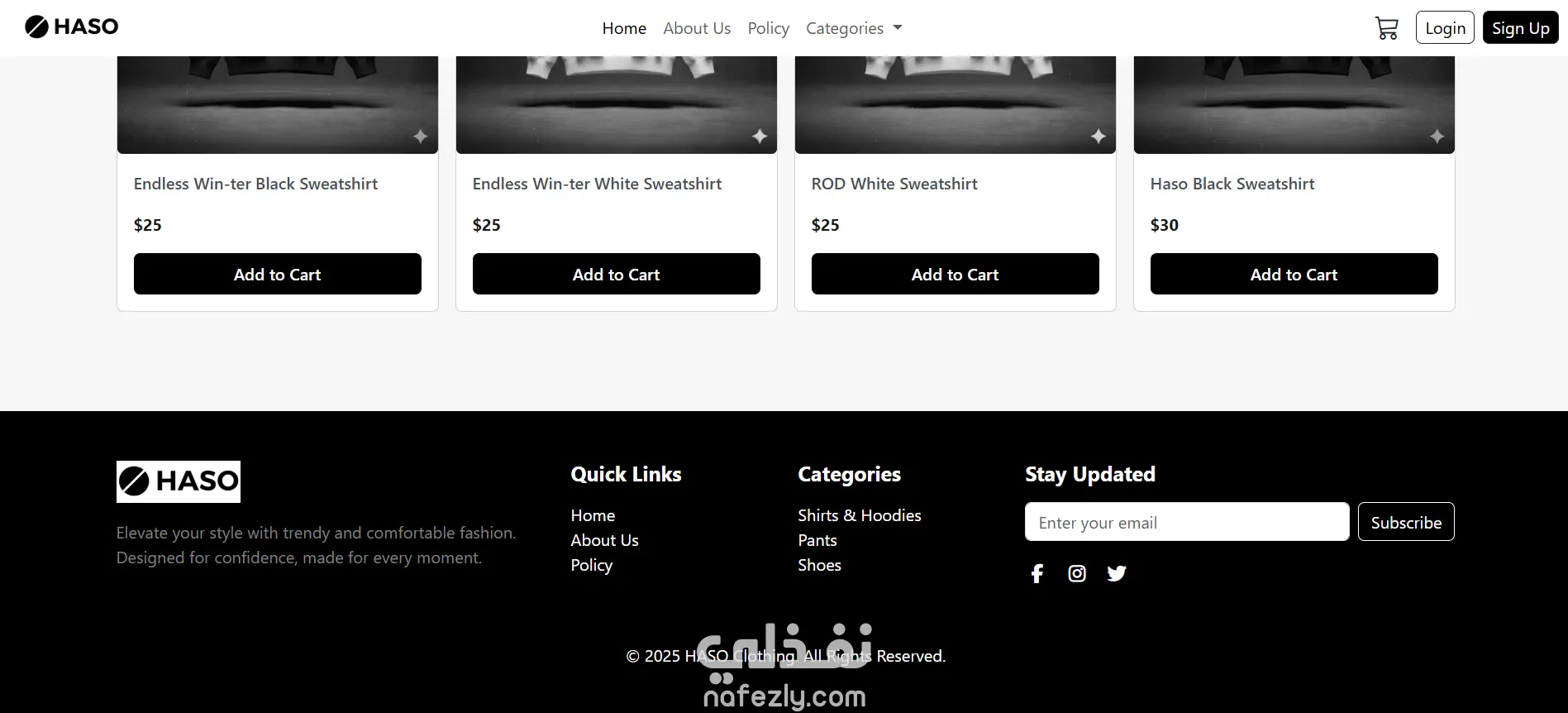 HASO هو موقع تجريبي بسيط لمتجر ملابس مخصص لفئة المراهقين، تم تطويره ضمن مشروع جماعي باستخدام HTML وCSS وBootstrap وJavaScript.