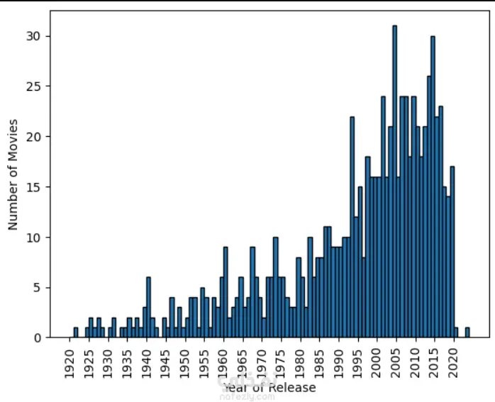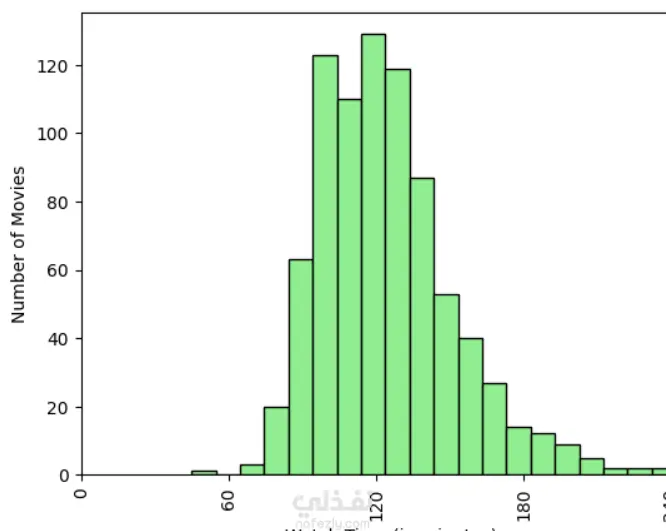 Histograms: لفحص توزيع مدة العرض، الأصوات، والإيرادات.