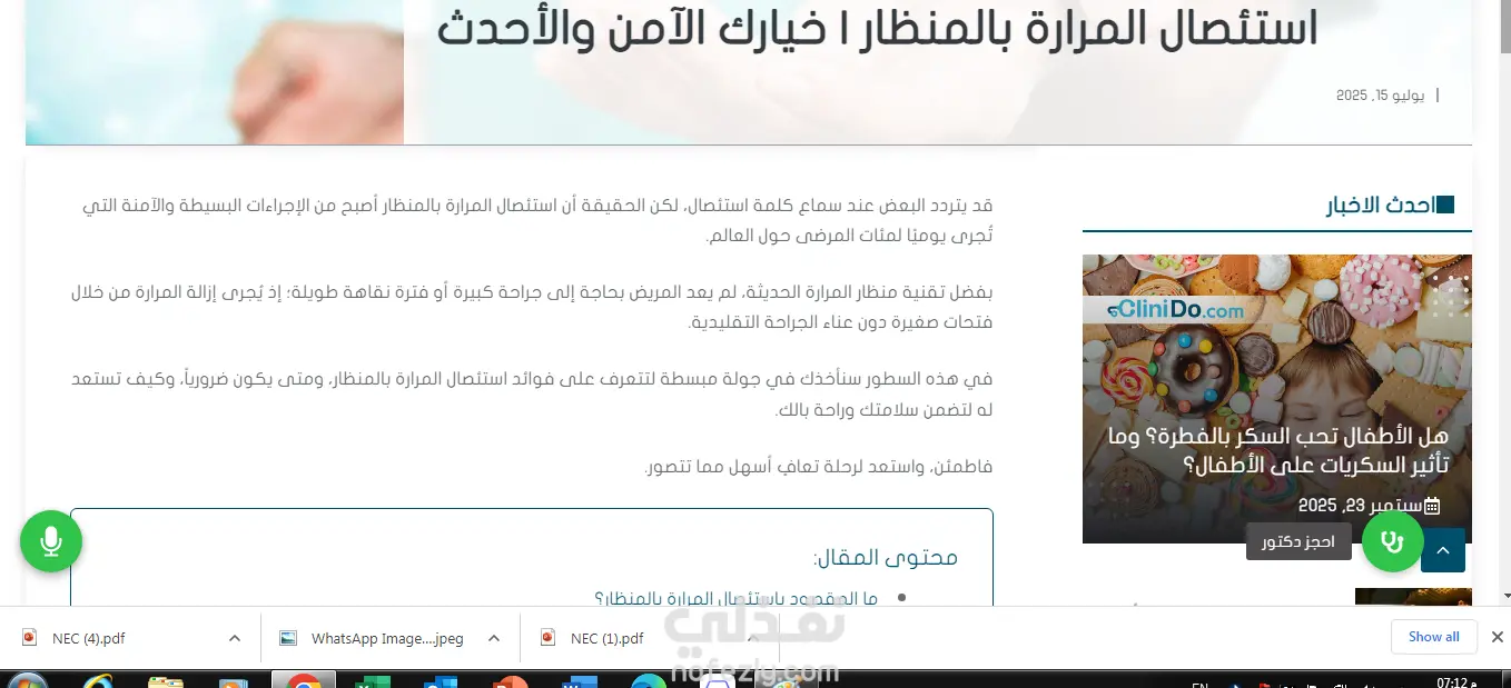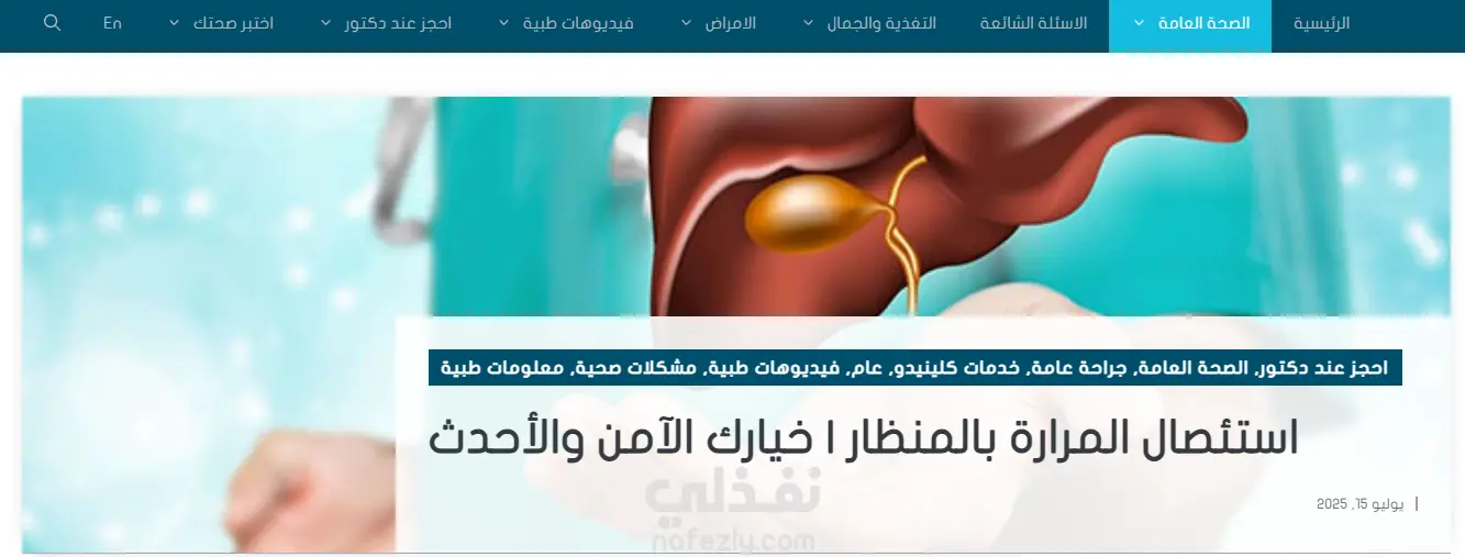 مقالة كتبتها عن استئصال المرارة بالمنظارة وهي تعد واحجة من أكثر العمليات التى يسأل عنها المريض بكثرة . كتبت عنها كل ما يتعلق عنها من مميزات وأضرار وعن الفئة المناسبة لهذه العملية. تم نشر هذه المقالة على موقع كلينيدو وحازت على معدل قراءة مرتفع لسلاسة الأسلوب ودقة المعلومات كما التزمت بقواعد السيو لتحسين ظهورها على محركات البحث.