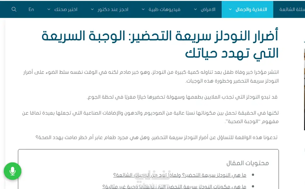 مقال عن مخاطر النودلز سريعة التحضير خاصة بعد ظهور وفيات في الفترة الأخيرة بسبب تناول النودلز. في هذا المقال تناولت كل ما يخص النودلز ومكوناتها ومخاطرها بأسلوب سلس يتناسب مع الجمهور ومتوافق مع قواعد السيو. تم نشر هذا المقال على مدونة كلينيدو.