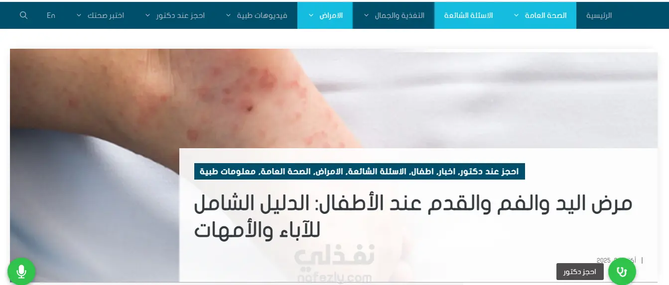 مقال يتضمن كل ما يخص مرض اليد والفم والقدم الذي انتشر مؤخرا بين الأطفال خاصة في المدارس. المقال يحتوى على معلومات دقيقة من مصادر طبية موثوقة ومكتوب بما يتوافق مع قواعد السيو.