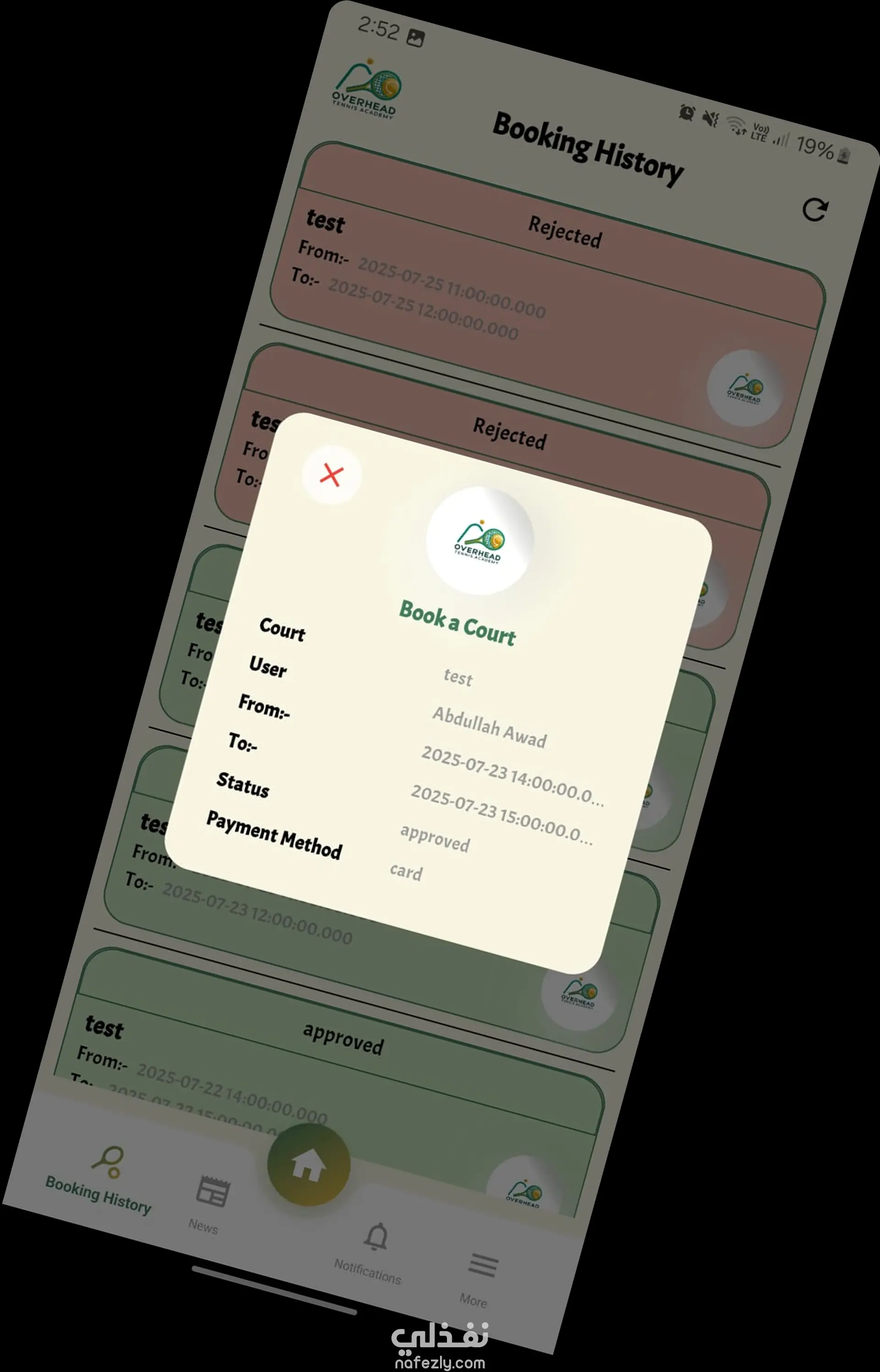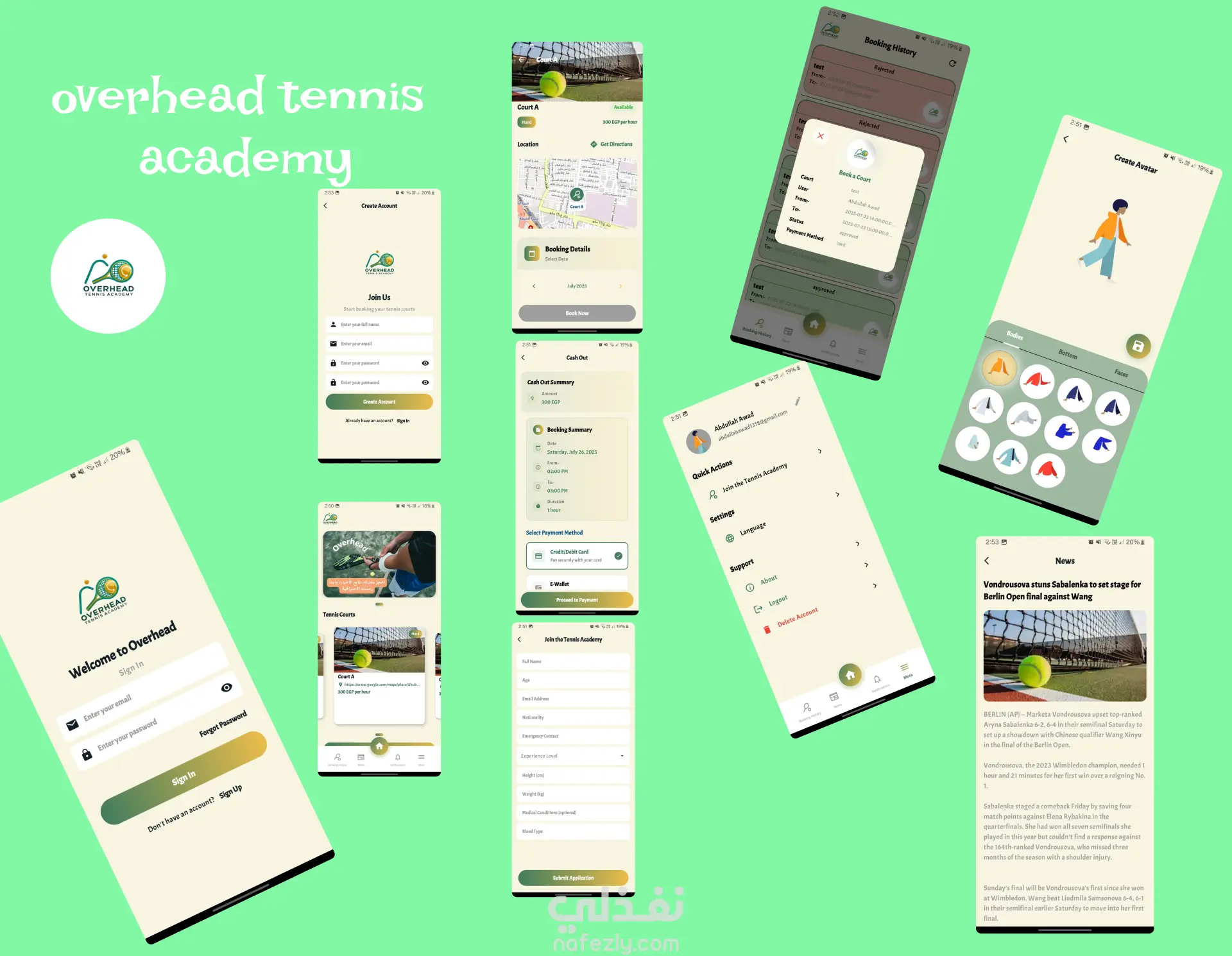 Overhead هو تطبيق مخصّص لأكاديميات التنس، يهدف إلى تسهيل عملية حجز الملاعب وإدارة طلبات الانضمام إلى الأكاديمية بشكل رقمي وسلس. يتيح التطبيق للمستخدمين: استعراض الملاعب المتاحة في الأكاديمية. حجز المواعيد المناسبة بسهولة. تقديم طلبات الانضمام إلى الأكاديمية إلكترونيًا. متابعة حالة الطلبات والحجوزات في أي وقت. يركّز التطبيق على توفير تجربة استخدام مريحة وسريعة، مع تصميم عصري وواضح يسهّل على اللاعبين والإدارة التعامل مع النظام. كما يوفّر حلولًا فعالة لتنظيم الجداول وتقليل الازدحام وتحسين إدارة الأكاديمية.
