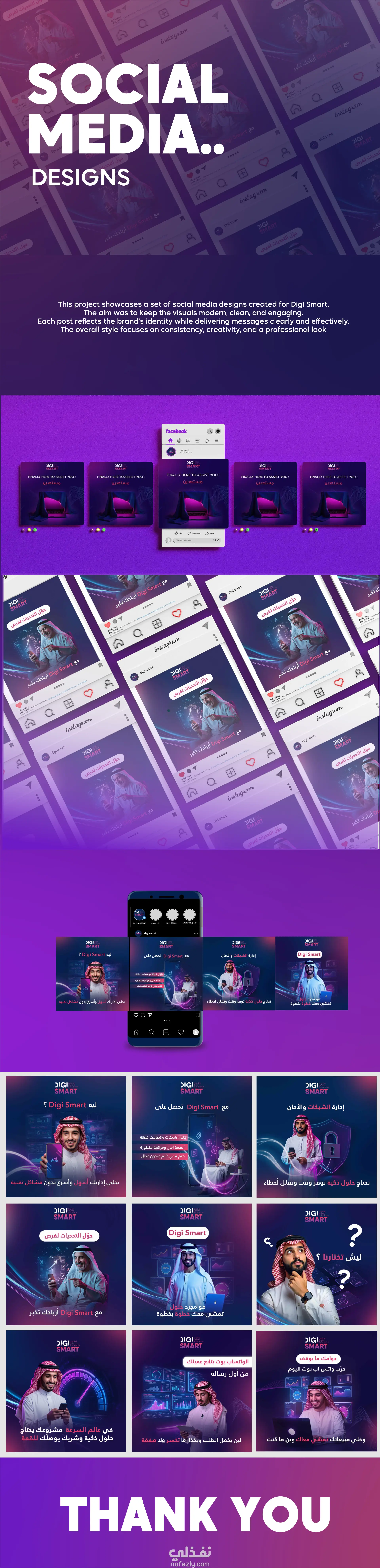 مجموعة تصميمات سوشيال ميديا بتعبر عن هوية البراند بشكل جذّاب ومتناسق