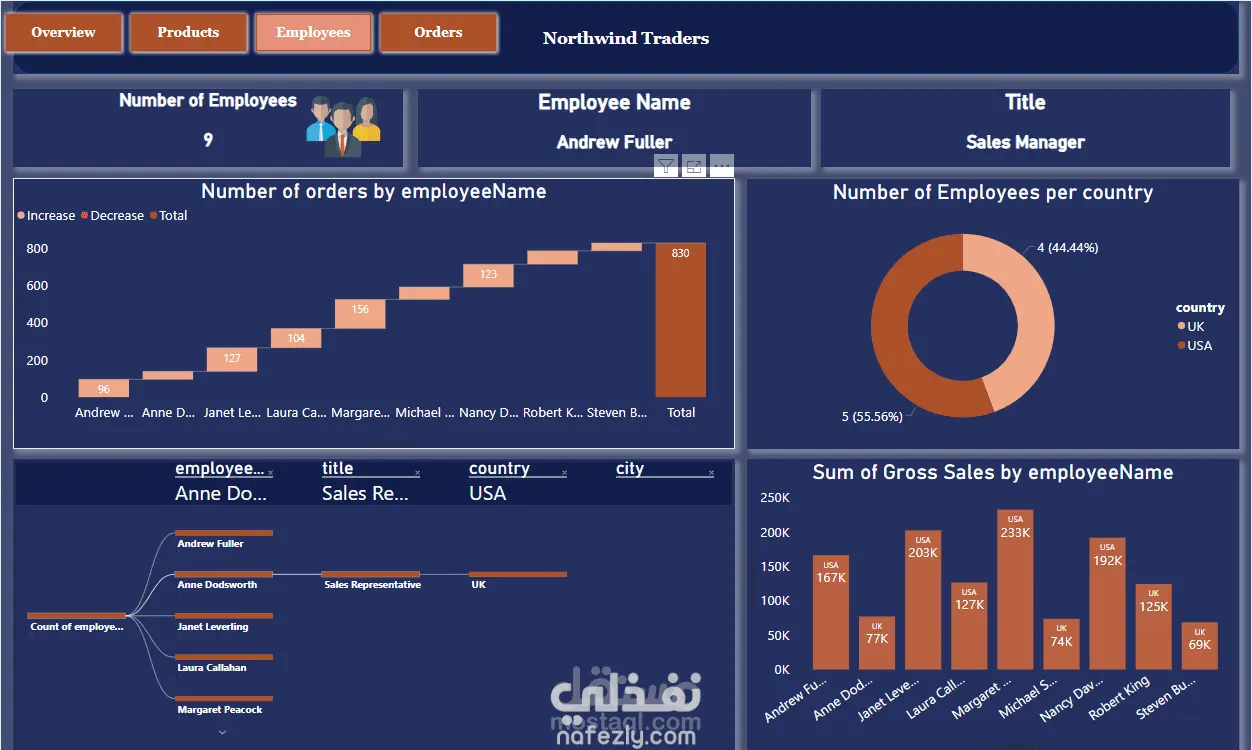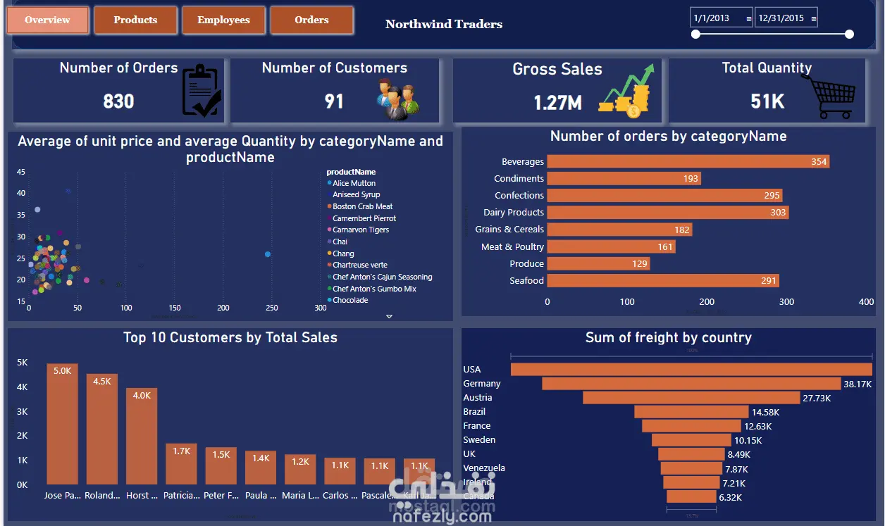 داشبورد احترافية عن ال Northwind Traders باستخدام Power BI
