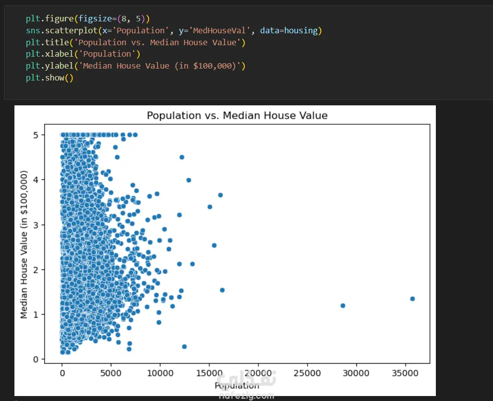- العلاقة بين الدخل المتوسط وسعر المنزل.