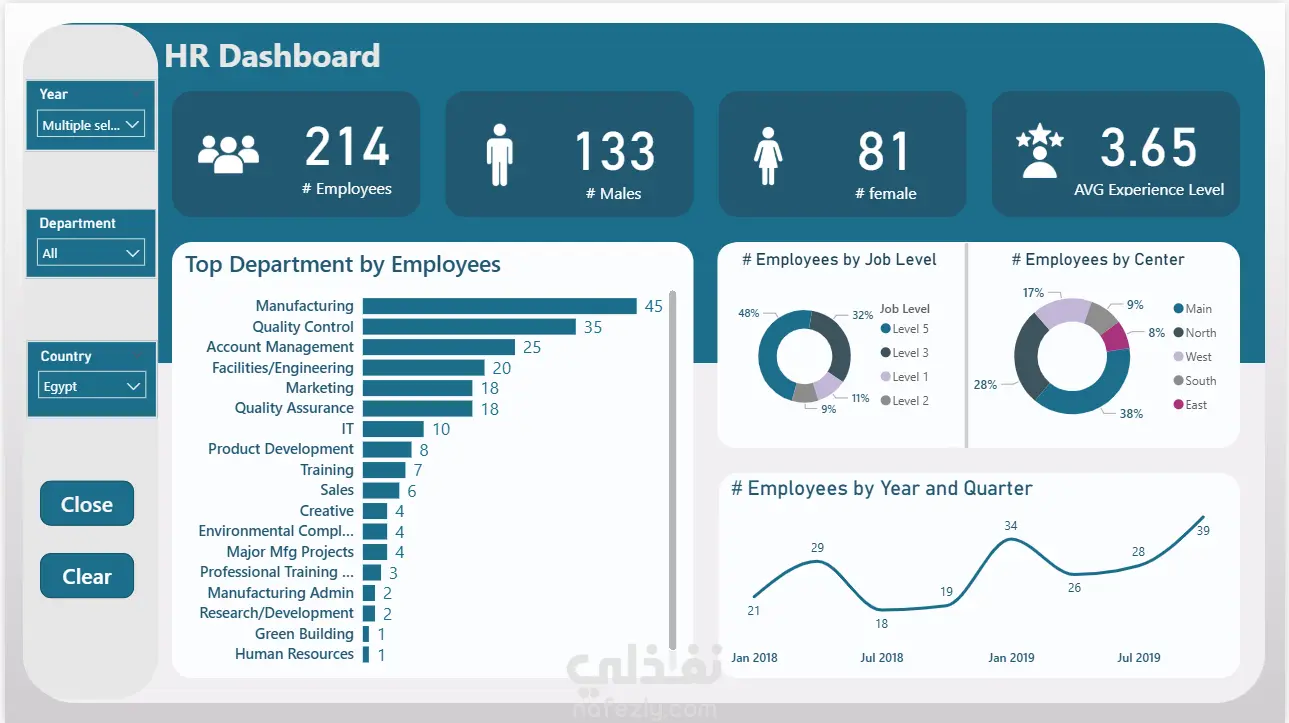 داشبورد لتحليل بيانات الموظفين | HR Dashboard Using Power BI