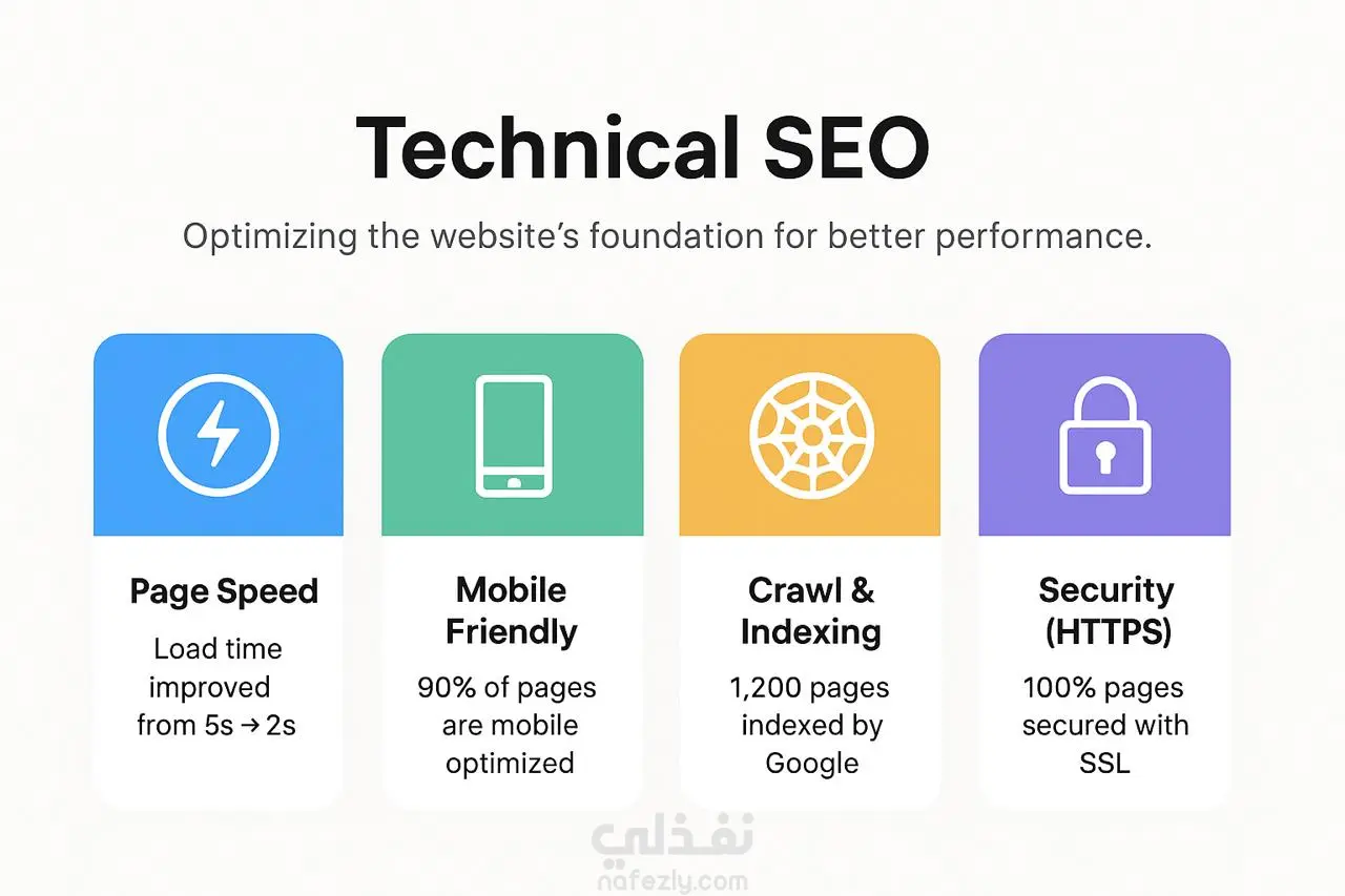 قمت بتنفيذ تحليل Technical SEO شامل لموقع إلكتروني، شمل فحص سرعة الموقع، الزحف والفهرسة، الروابط المكسورة، وتحسين الميتاداتا وهيكل الروابط الداخلية. قدمت تقريرًا تفصيليًا بالأخطاء التقنية مع خطة تحسين عملية ساهمت في رفع سرعة الموقع وتحسين ظهوره في نتائج البحث.