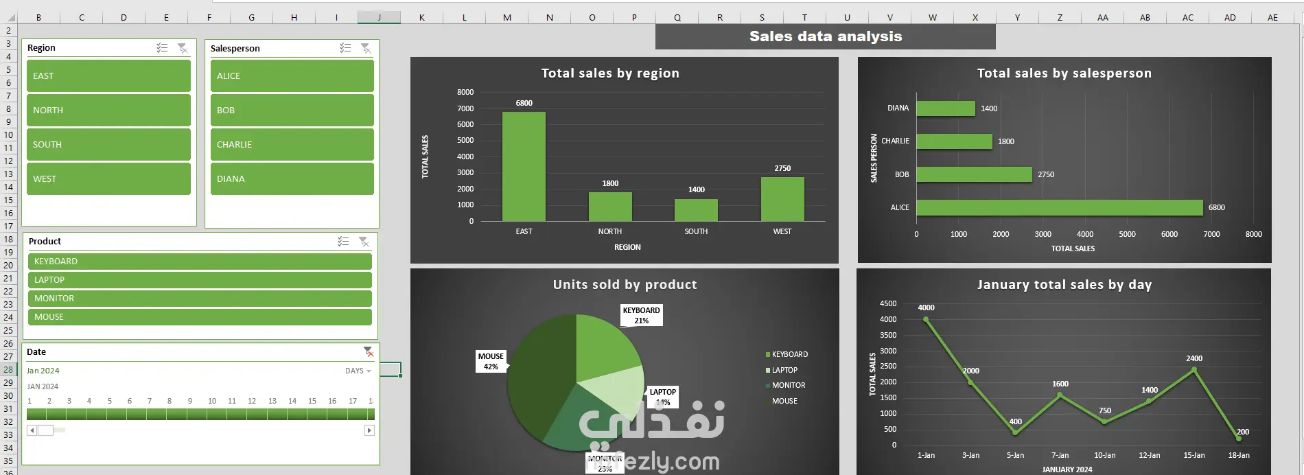 تواصل معي أحد العملاء ومعه مجموعة ضخمة من بيانات المعاملات البيعية — مجرد صفوف من الأرقام التي لم تكشف الكثير في البداية. كان التحدي واضحًا: الاحتياج إلى معرفة أفضل مندوبي المبيعات أداءً، والمناطق الأكثر تحقيقًا للإيرادات، والمنتجات الأكثر مبيعًا بالفعل. خطوات تنفيذ المشروع: - تنظيف البيانات وتصحيح الأخطاء - إنشاء pivot tables والربط بينها لتحقيق التكامل بين البيانات. - بناء لوحة متابعة تفاعلية حوّلت تلك الأرقام إلى صورة واضحة عن الأداء. - إضافة Slicers لتصفية البيانات حسب السنة أو القسم أو نوع المنتج أو مندوب المبيعات.