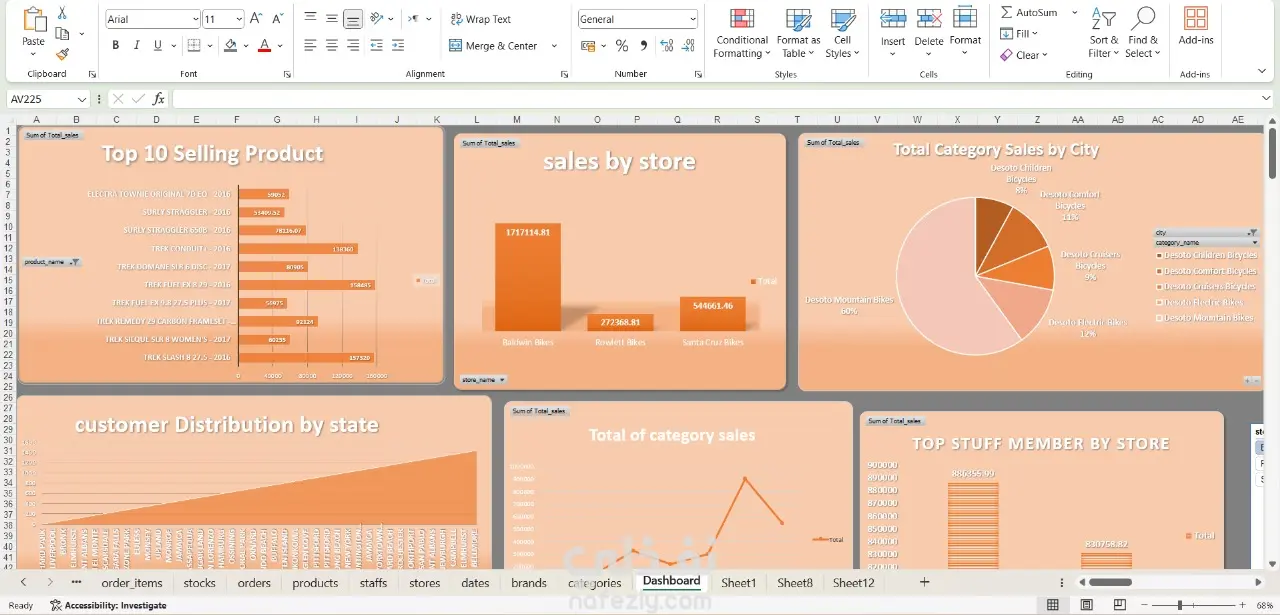 تحليل شامل للمبيعات والمنتجات في Excel Dashboard