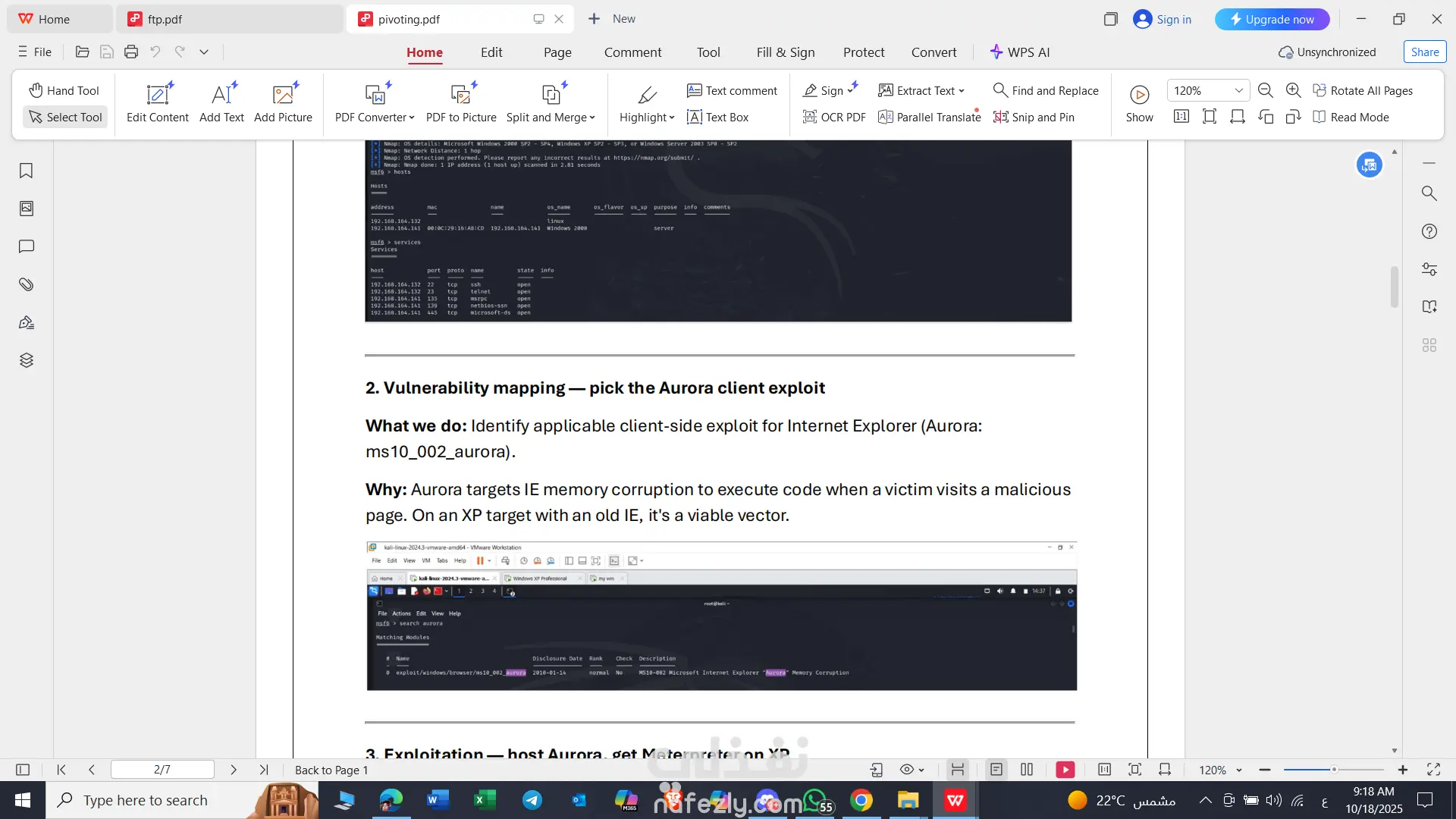 استخدمت جهازًا مخترقًا كجسر للوصول إلى أجهزة داخلية أخرى داخل الشبكة، مما أظهر كيف يمكن لمهاجم واحد الوصول لأنظمة لا يمكن الوصول إليها مباشرة إجراءات بسيطة للوقاية (مهمة للعميل): افصل الأجهزة القديمة أو ضعها في شبكة منفصلة (VLAN) حتى ما تبقاش جسر للوصول لباقي الأنظمة. حدّ من حركة الشبكة بين الأقسام: خلي كل جهاز يتواصل بس مع اللي محتاجه فقط (قواعد جدار ناري). حدّث الأنظمة والمتصفحات بانتظام وما تستخدمش برامج قديمة. راقب الشبكة لاكتشاف سلوك غريب (زي أجهزة بتعمل اتصال غير متوقع أو تحويل مسارات).
