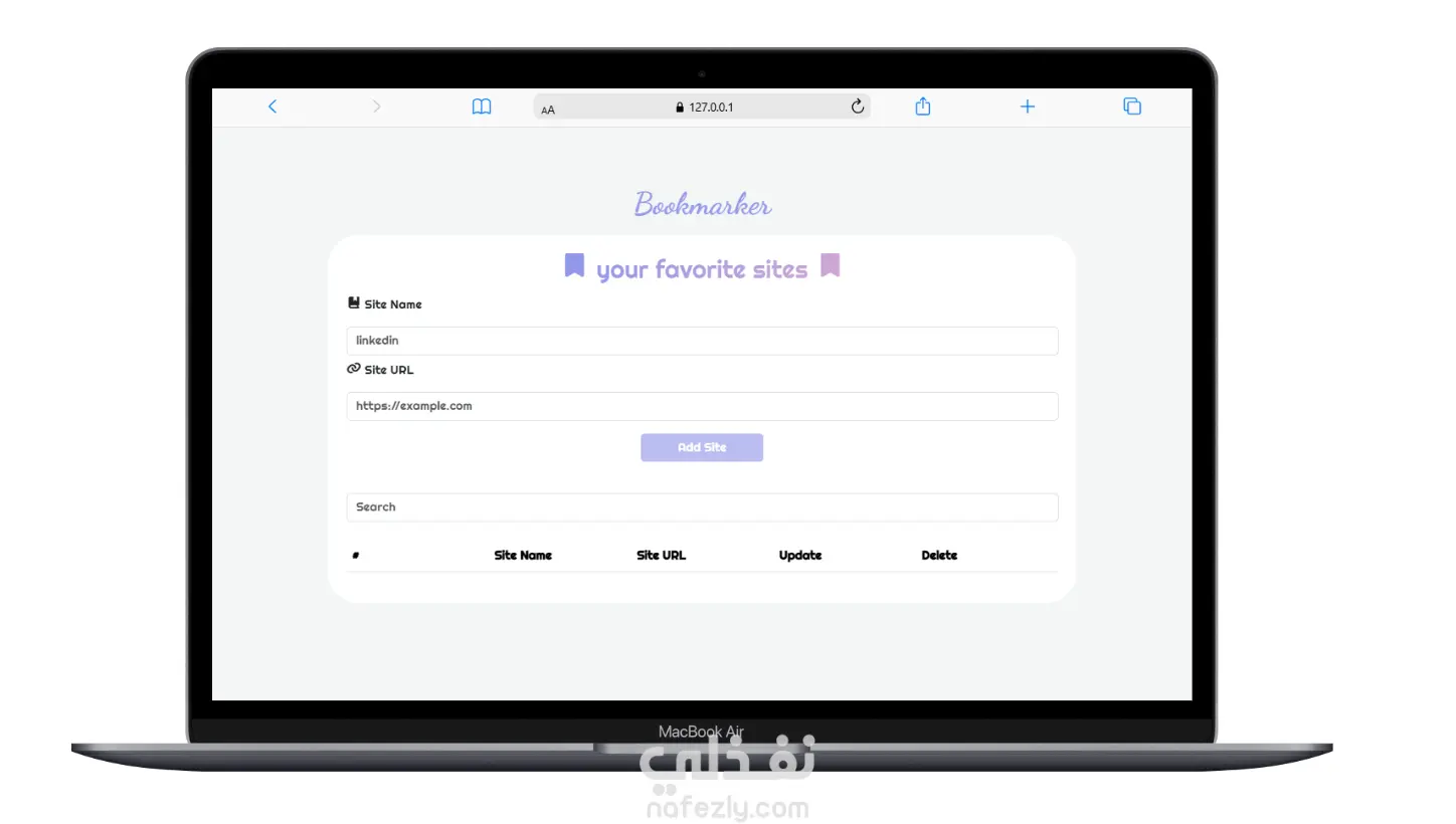 يوفر للمستخدمين إمكانية إضافة، تعديل، حذف، والبحث عن المواقع بسهولة، مع واجهة أنيقة ومتجاوبة تعمل بكفاءة على جميع الأجهزة.