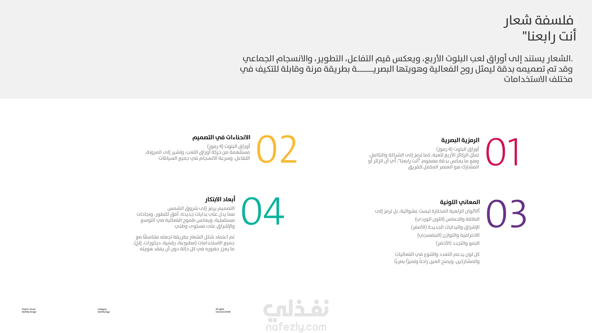 تم تصميم هوية فعالية " أنت رابعنا للبلوت بأسلوب يعكس روح المنافسة والحماس في أجواء موسم الرياض. انطلقت العملية من دراسة عميقة لثقافة لعبة البلوت ومكانتها الشعبية ثم ترجمت هذه الروح إلى عناصر بصرية متوازنة تجمع بين الألوان الجريئة والرموز المستوحاة من أوراق اللعب. المشروع: تصميم الهوية البصرية البلد: السعودية,الرياض السنة:2025