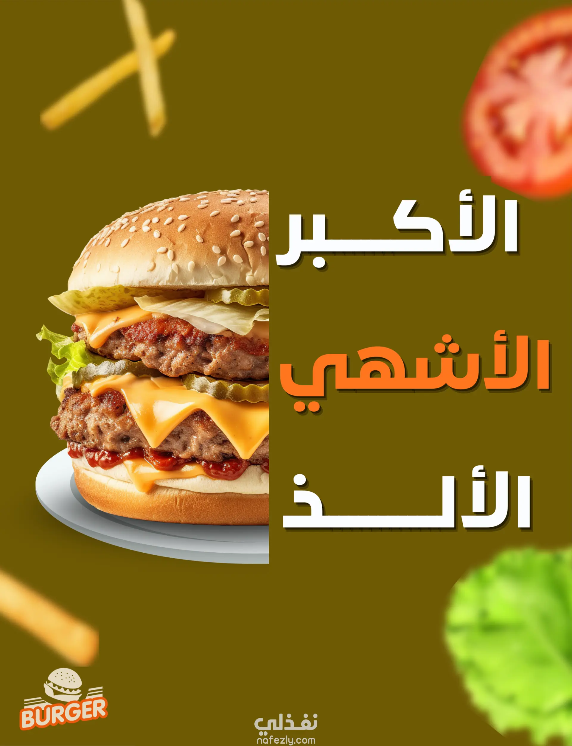 بوستر احترافي لبرجر لمطعم يتميز بالبساطة وجذب انتباه العميل