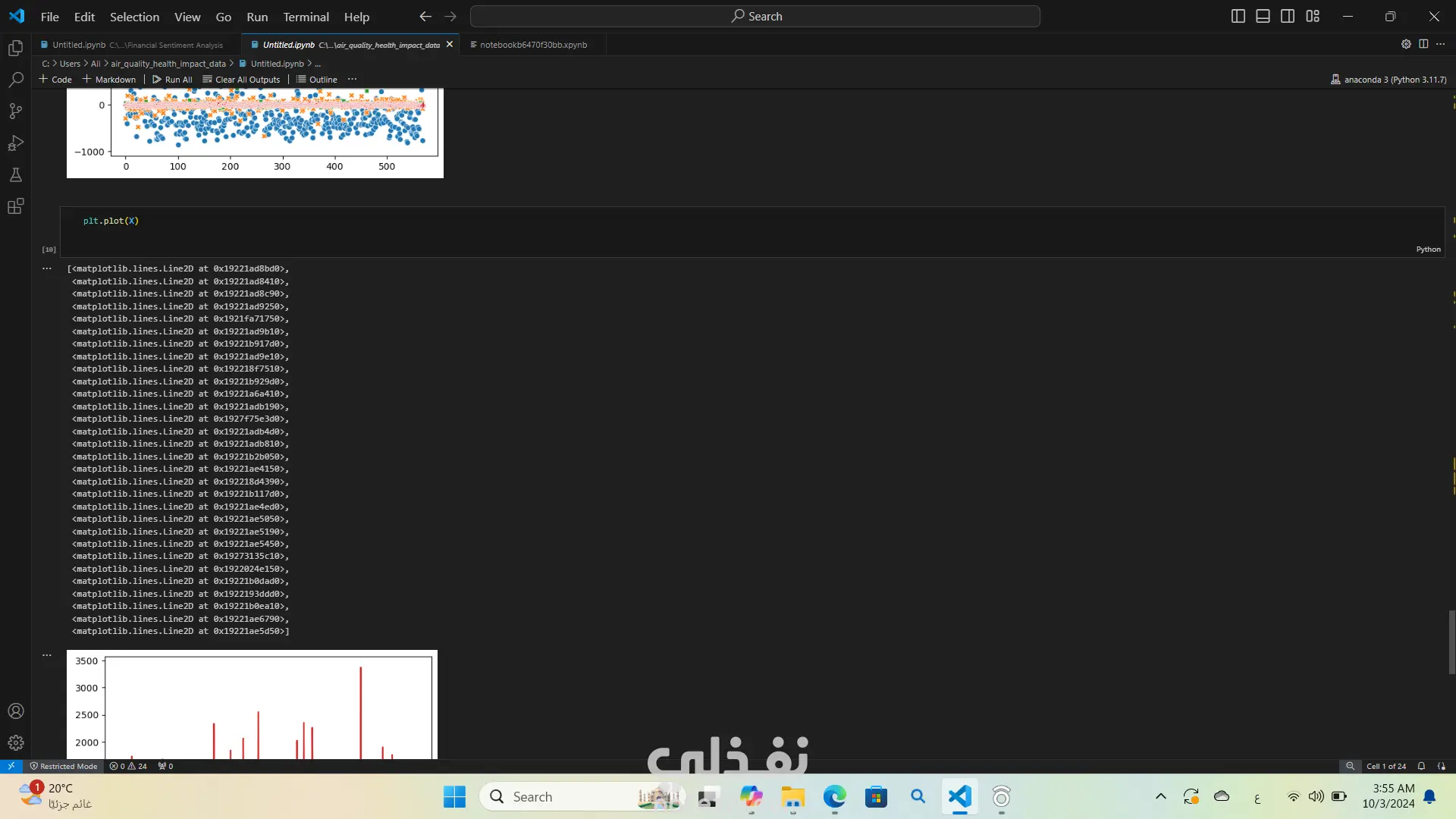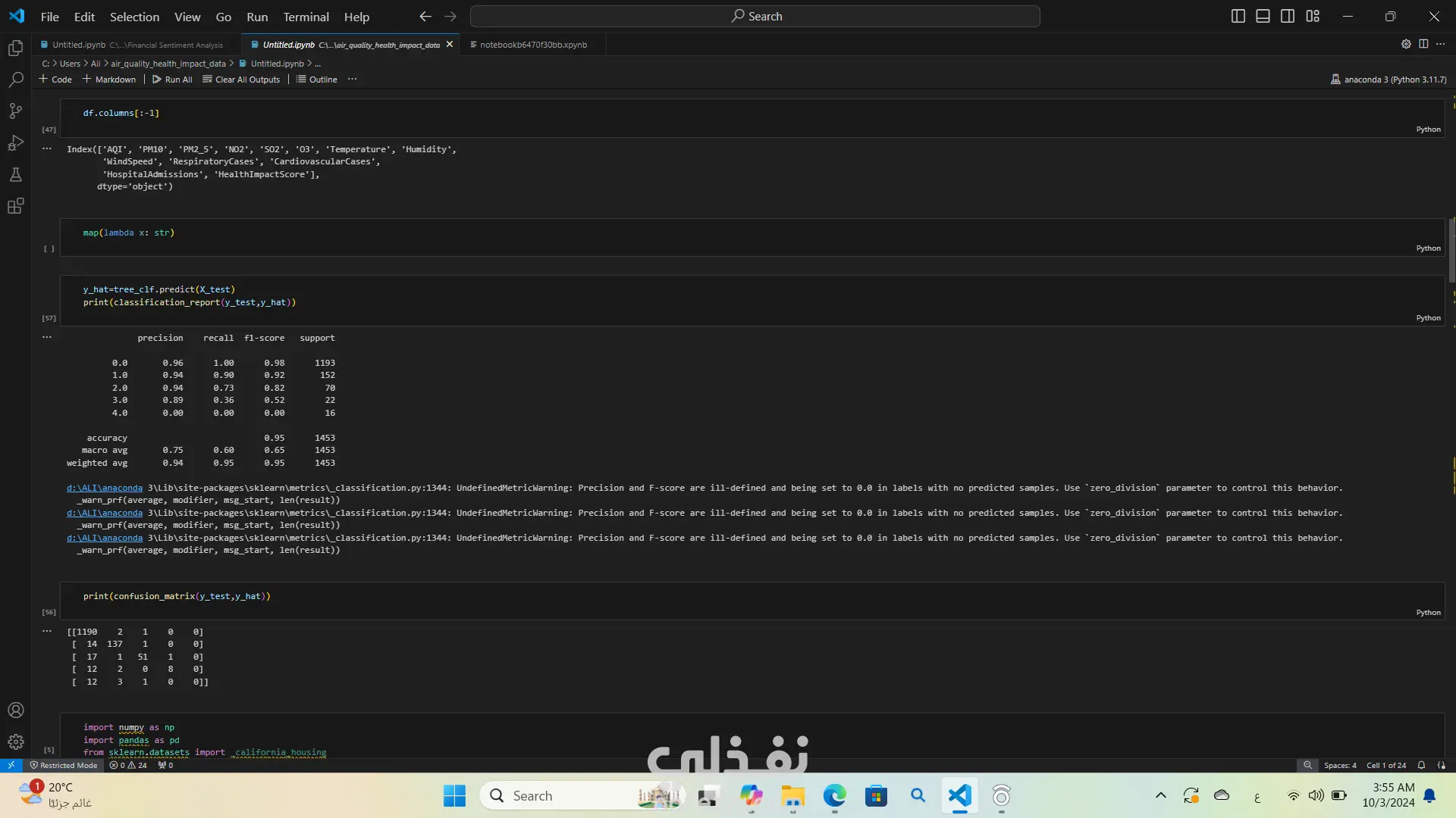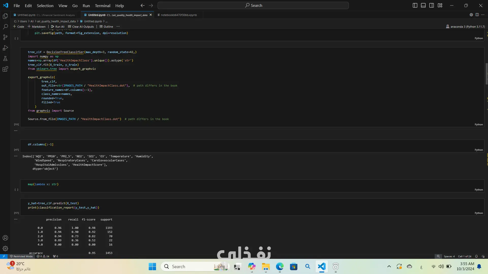 لقد قمت بتحليل بيانات جودة الهواء وتأثيرها على الصحة باستخدام لغة البرمجة بايثون استخدمت مكتبات مثل Pandas وNumPy لتحليل البيانات وMatplotlib وSeaborn لإنشاء الرسوم البيانية والتصورات. كان هذا التحليل مفيدًا جدًا في فهم العلاقة بين جودة الهواء والصحة العامة واستخراج الأفكار والأنماط من البيانات