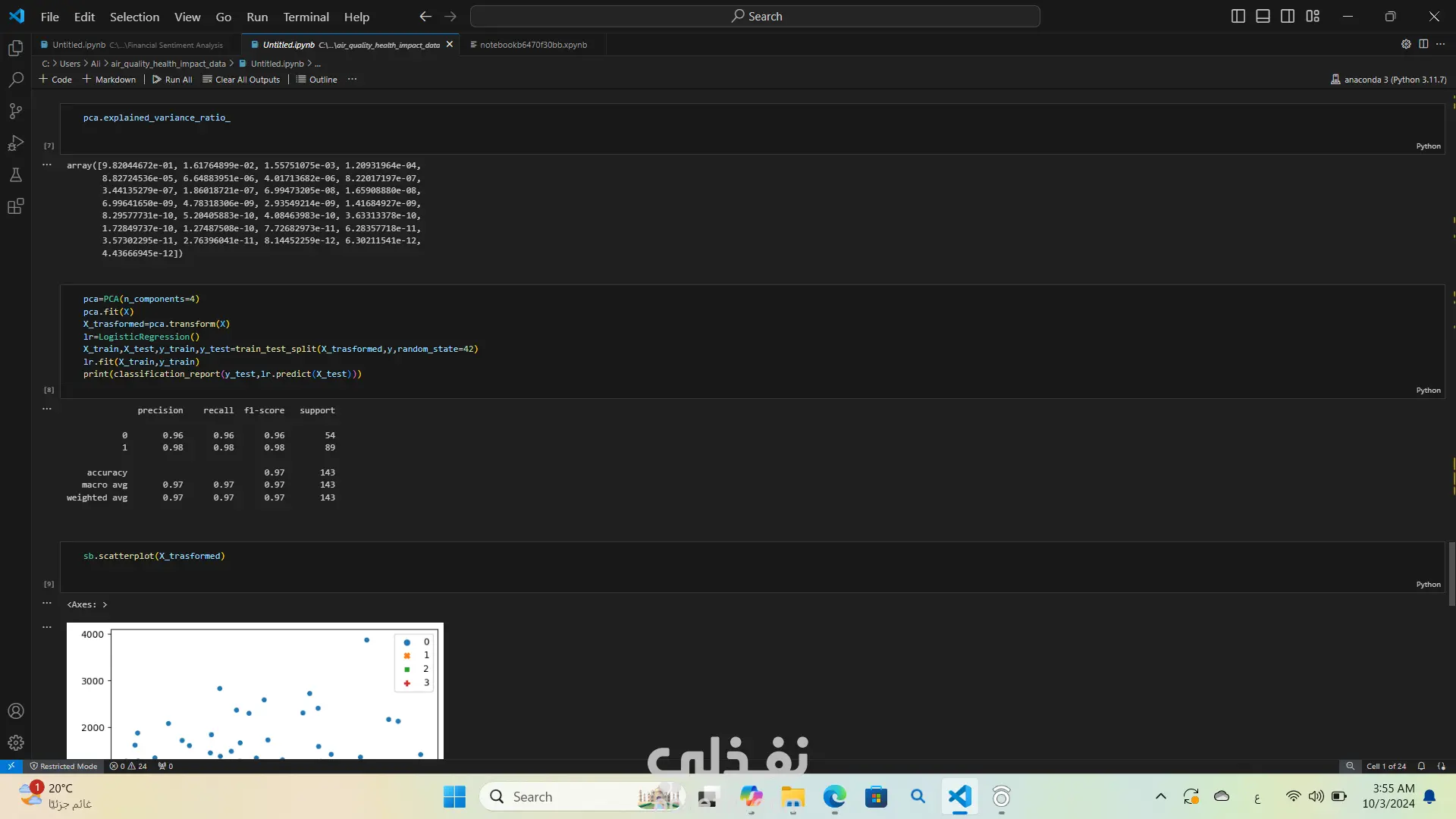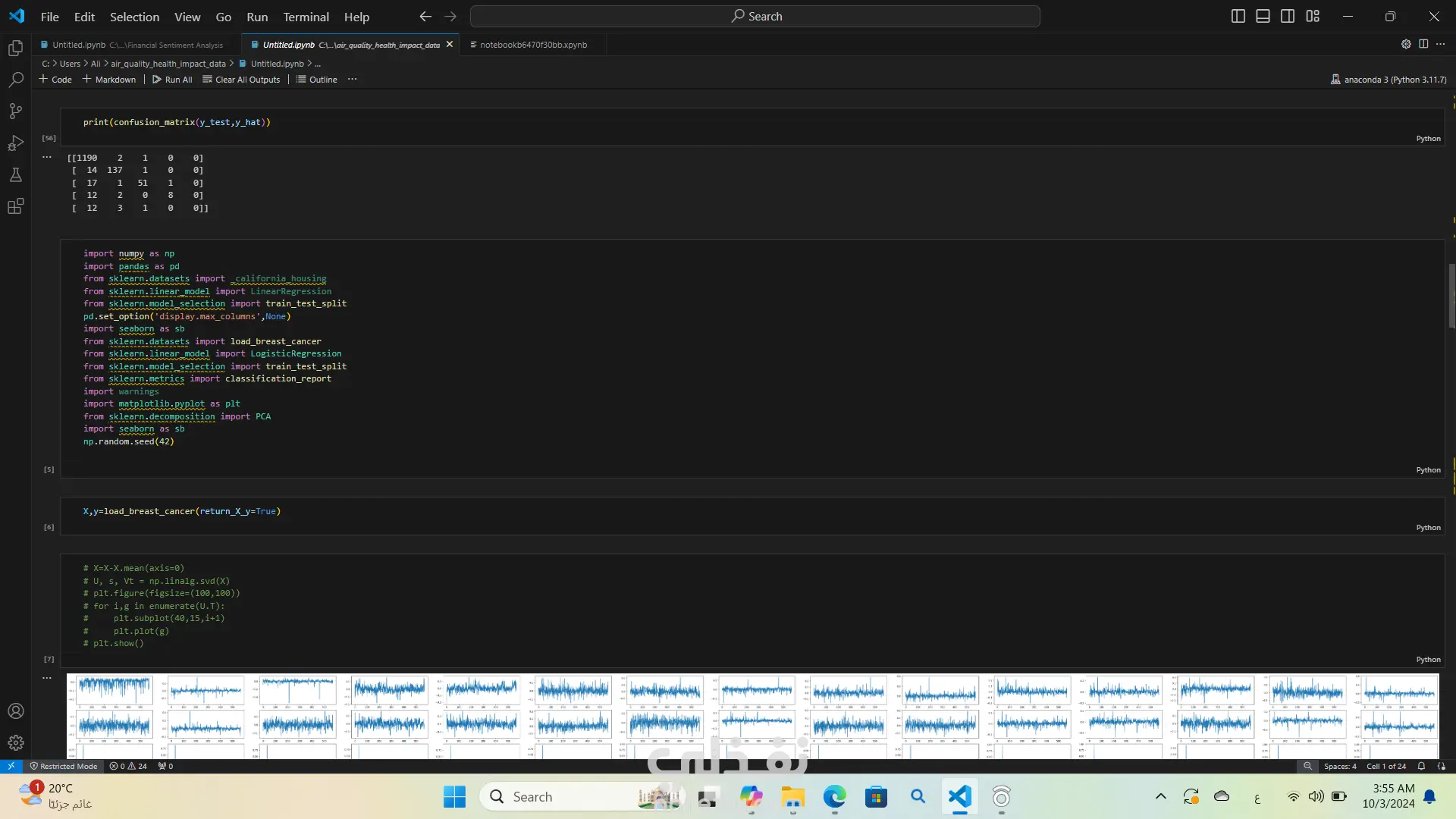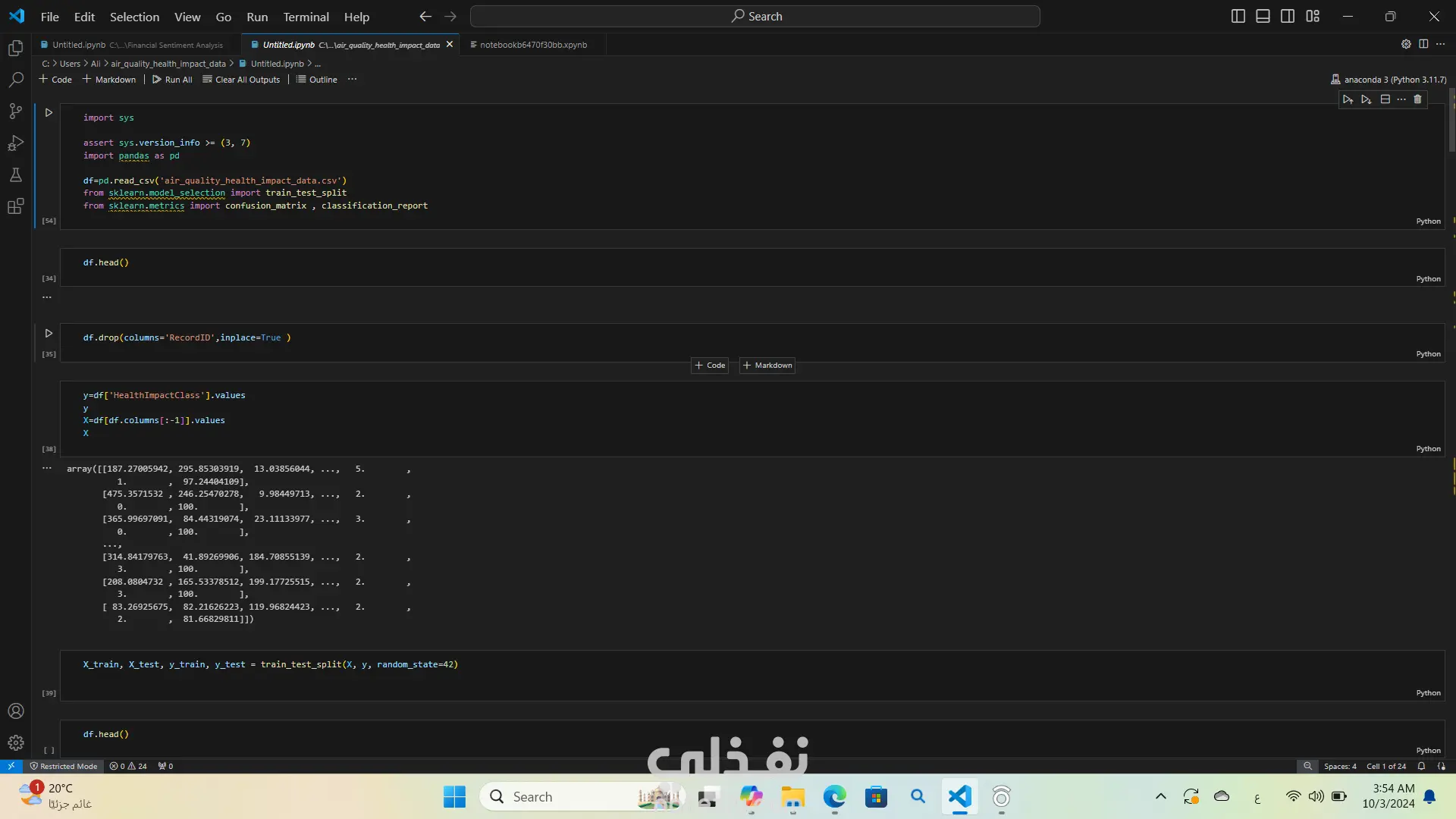 لقد قمت بتحليل بيانات جودة الهواء وتأثيرها على الصحة باستخدام لغة البرمجة بايثون استخدمت مكتبات مثل Pandas وNumPy لتحليل البيانات وMatplotlib وSeaborn لإنشاء الرسوم البيانية والتصورات. كان هذا التحليل مفيدًا جدًا في فهم العلاقة بين جودة الهواء والصحة العامة واستخراج الأفكار والأنماط من البيانات