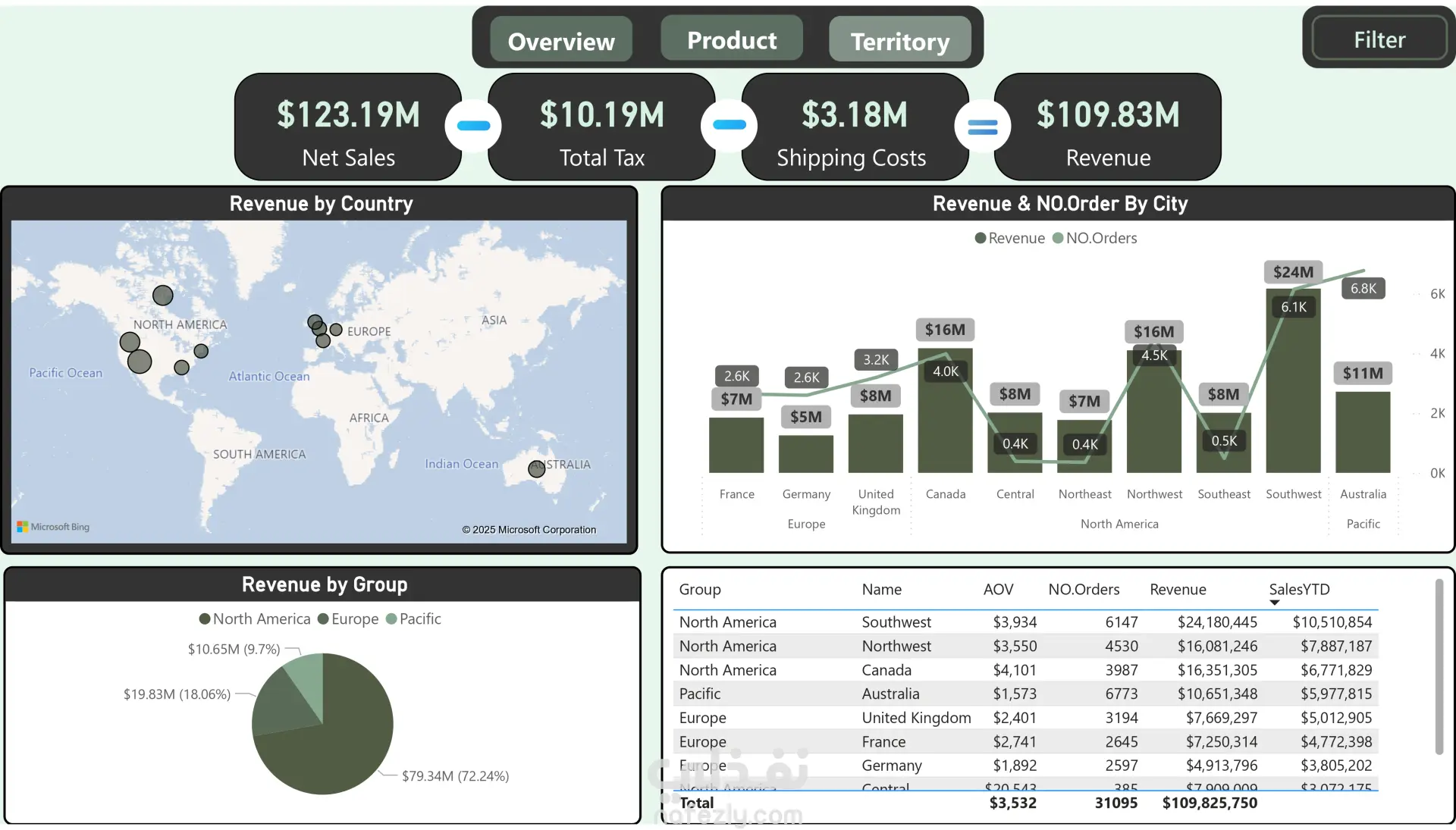 بأشتغل على تنظيف البيانات، تنظيمها، وربطها ببعض بشكل يوضح العلاقات، وبعد كده بقدّم التحليل ده على شكل Dashboard تفاعلية واحدة بتوضح: