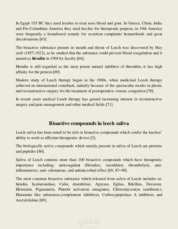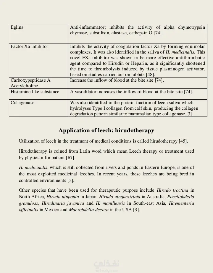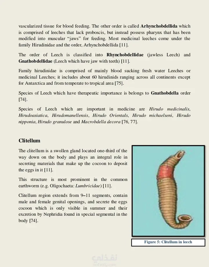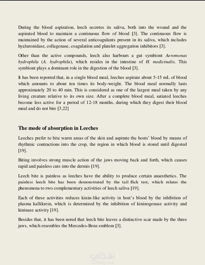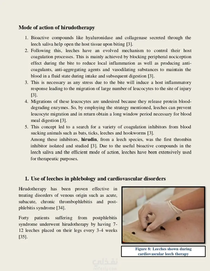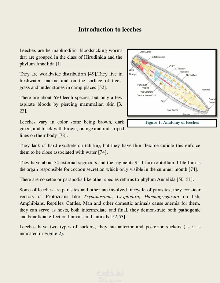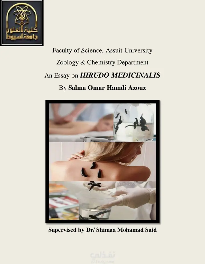 ده نموذج من بحث مشروع التخرج بتاعي بعنوان "ال Hirudo medicinalis العلق الطبي".