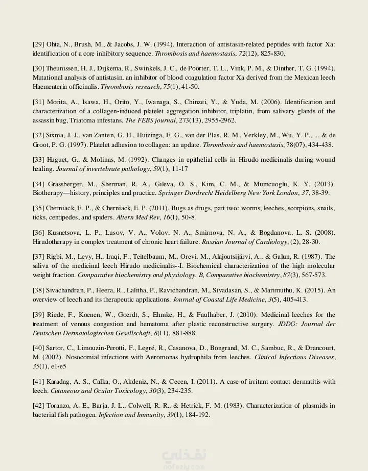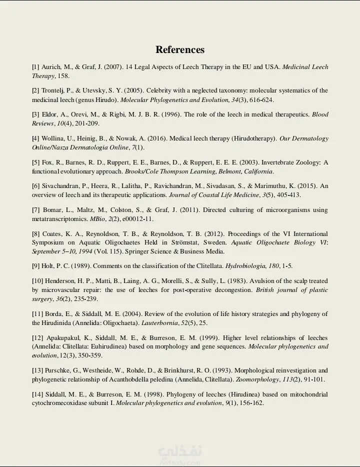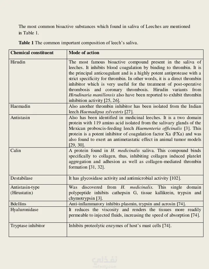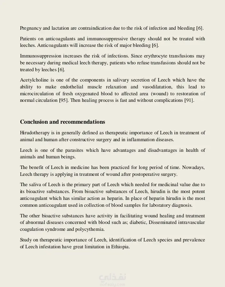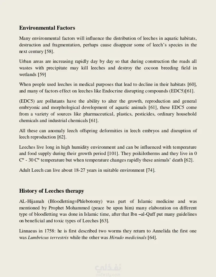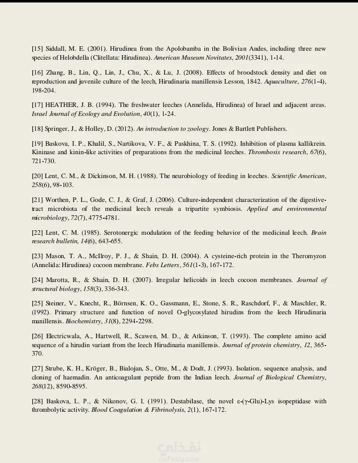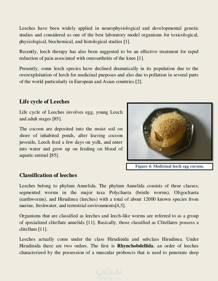 ده نموذج من بحث مشروع التخرج بتاعي بعنوان "ال Hirudo medicinalis العلق الطبي".
